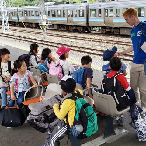 集合→電車移動→地域探検→お弁当→沢遊び→夕食づくり→英語を使ったレク→就寝