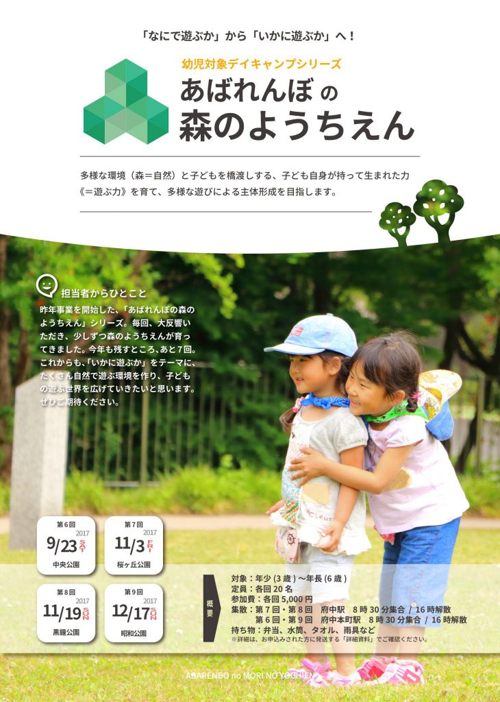 あばれんぼの森のようちえんは、3歳から6歳幼児限定の日帰りシリーズです。