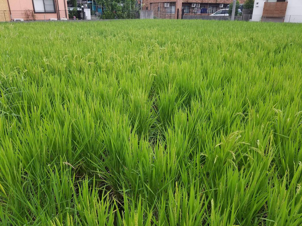 春に田植えをしたイネは、夏になると葉を増やすのをやめて、穂を作り始めます。茎の中から、さやを割ってうす緑色の穂が出てくることを「出穂(しゅっすい)」といい、この穂にイネの花が咲くのです。