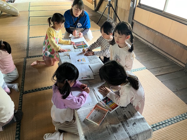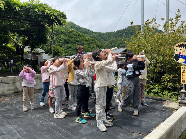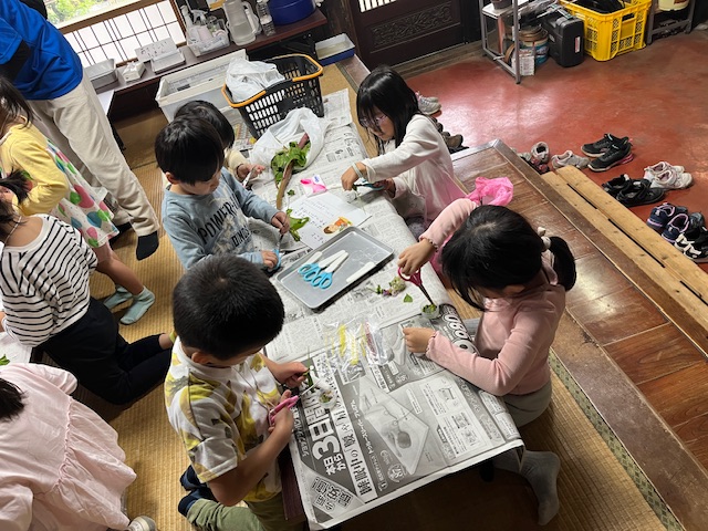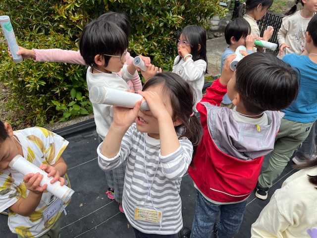 キッズチャレンジキャンプメンバーは、キャンプの思い出工作として葉っぱやお花を使った万華鏡を作成しました^ ^