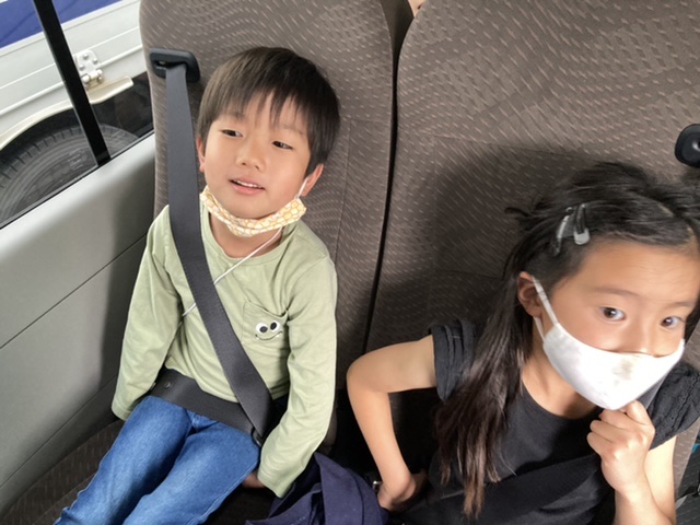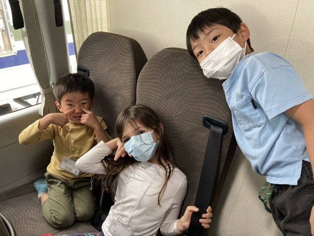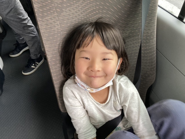 バスの中ではリーダーやお友達とお話ししたり、DVDを観てゆっくり過ごしています。