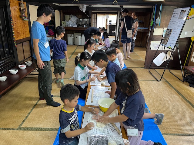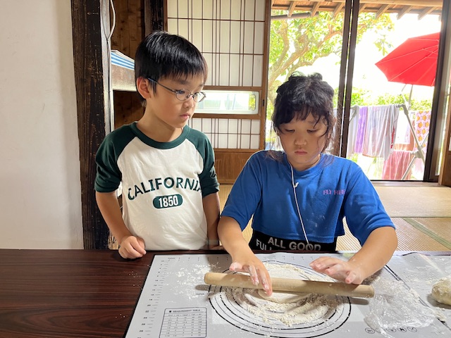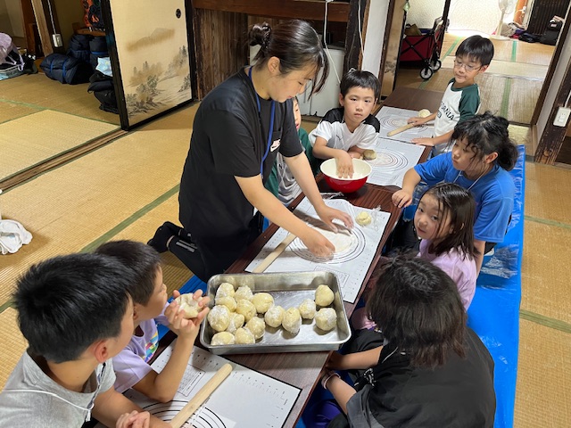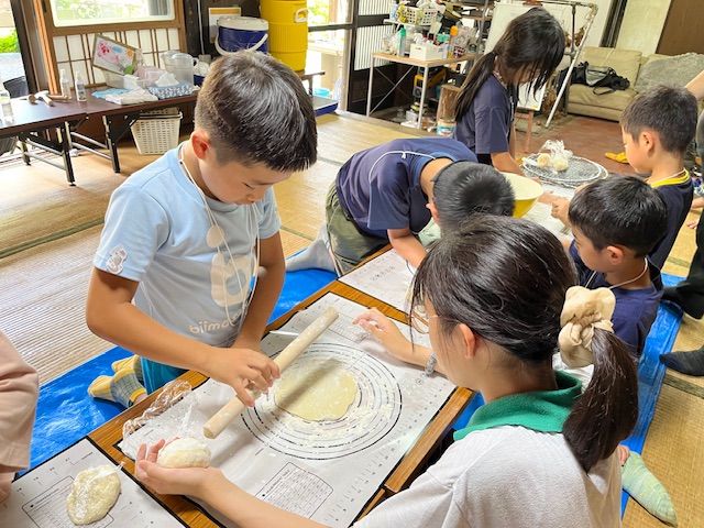 みんなで協力して捏ねた生地に好きな具材をトッピング…!