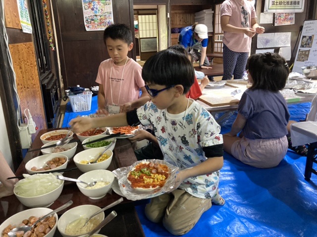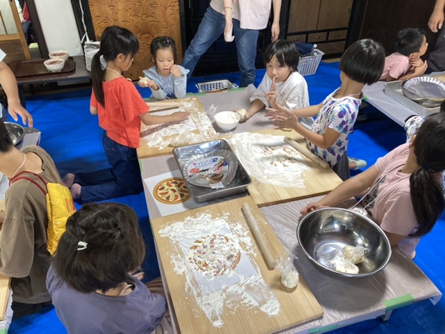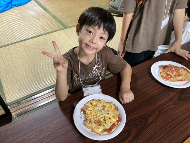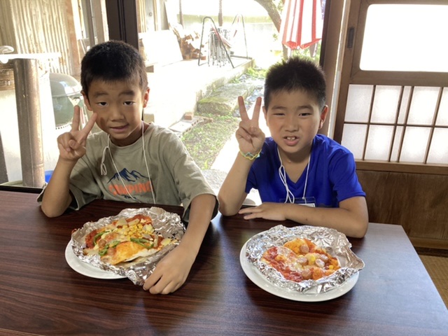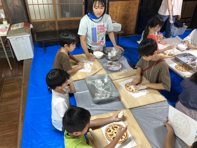その後は、昨日仕込んだピザ生地を使って1人1枚ピザを焼きました。