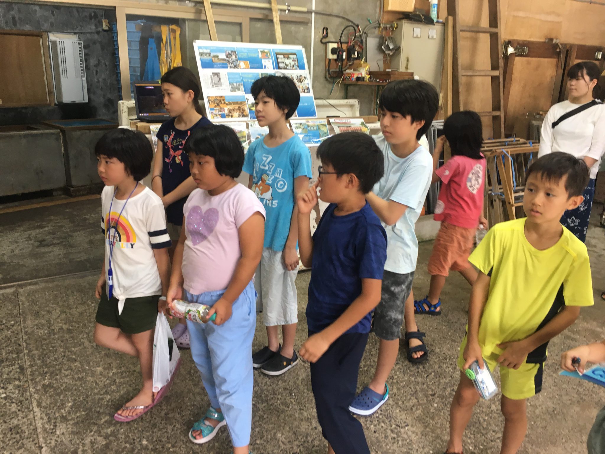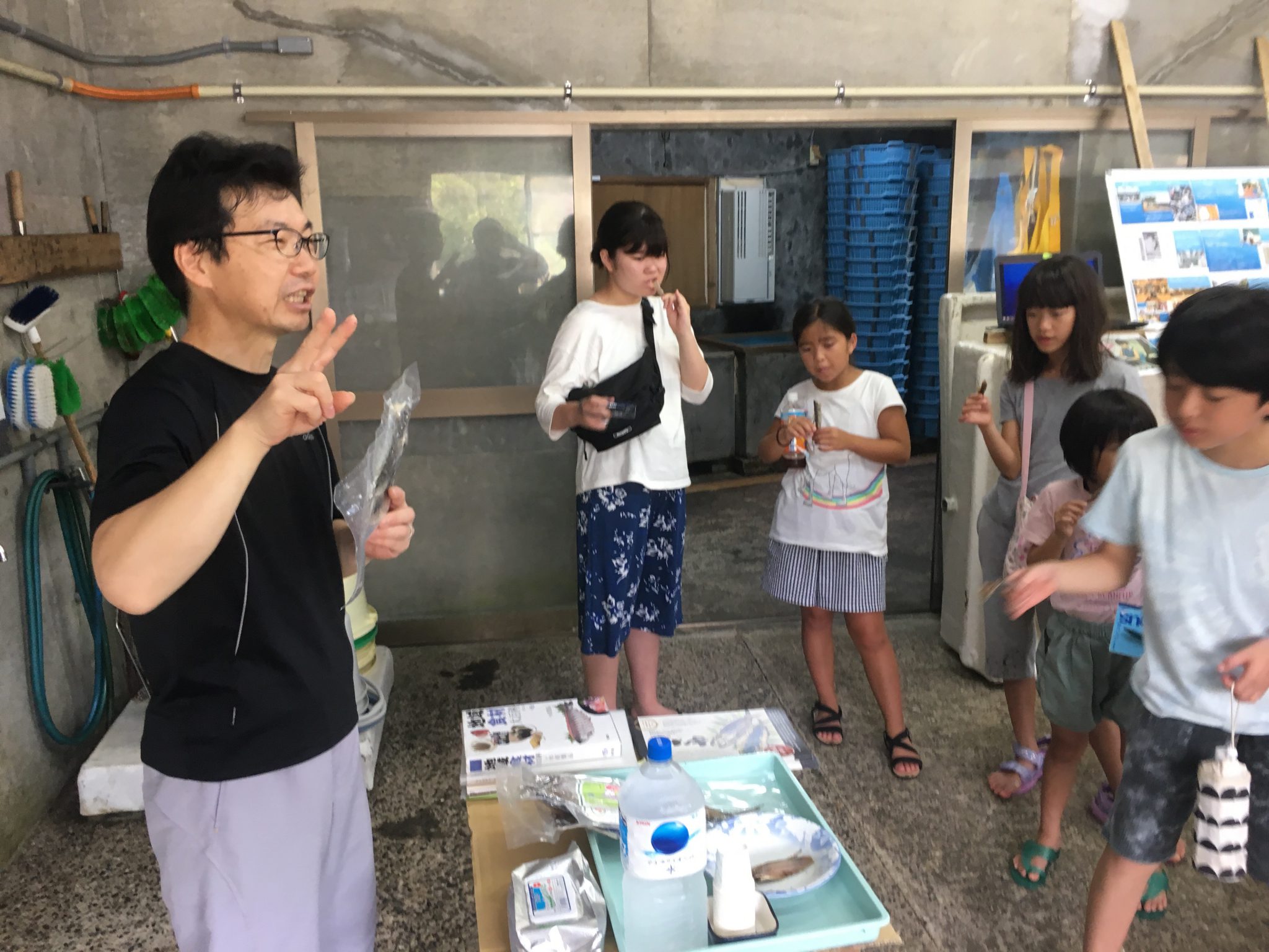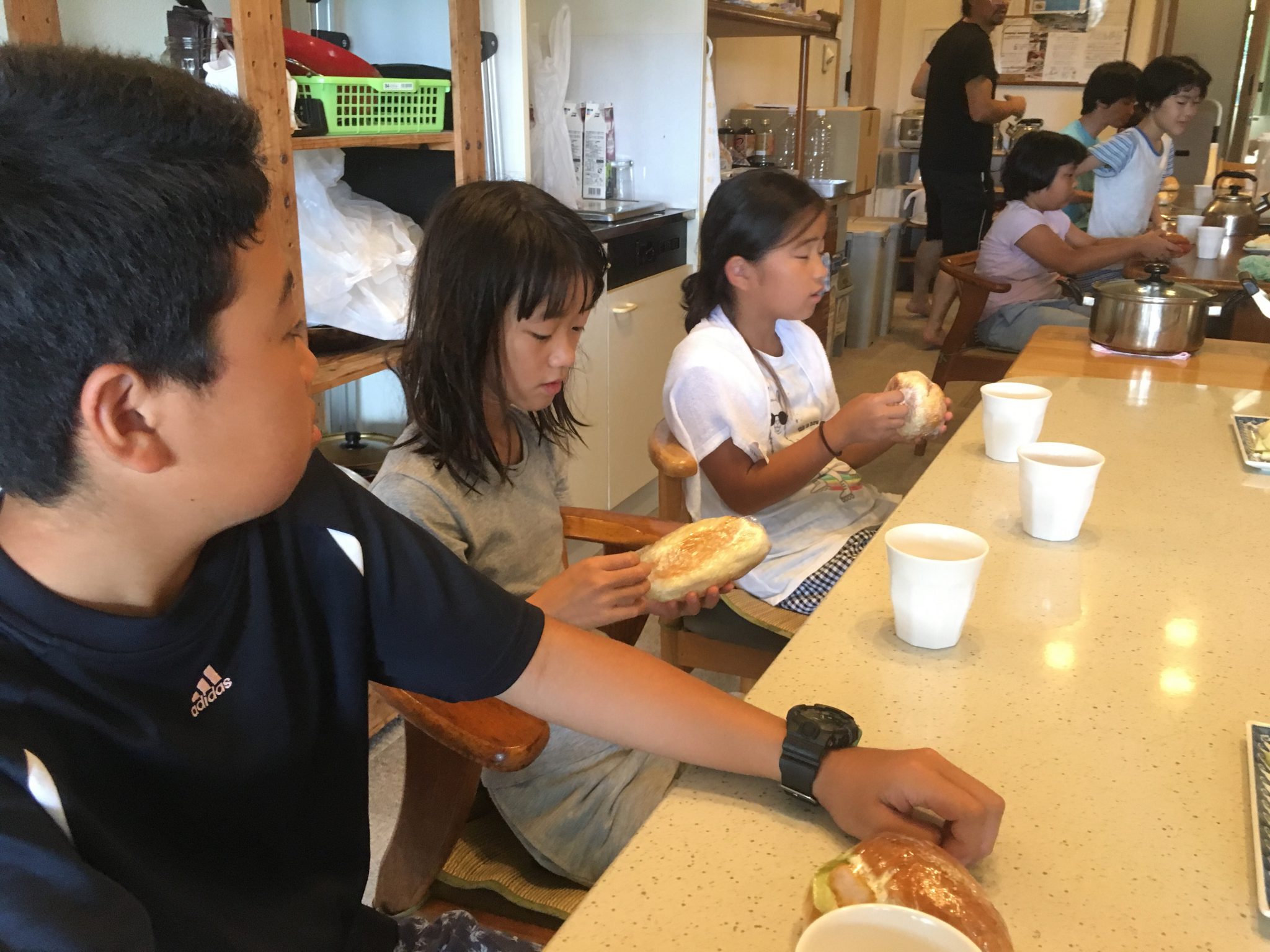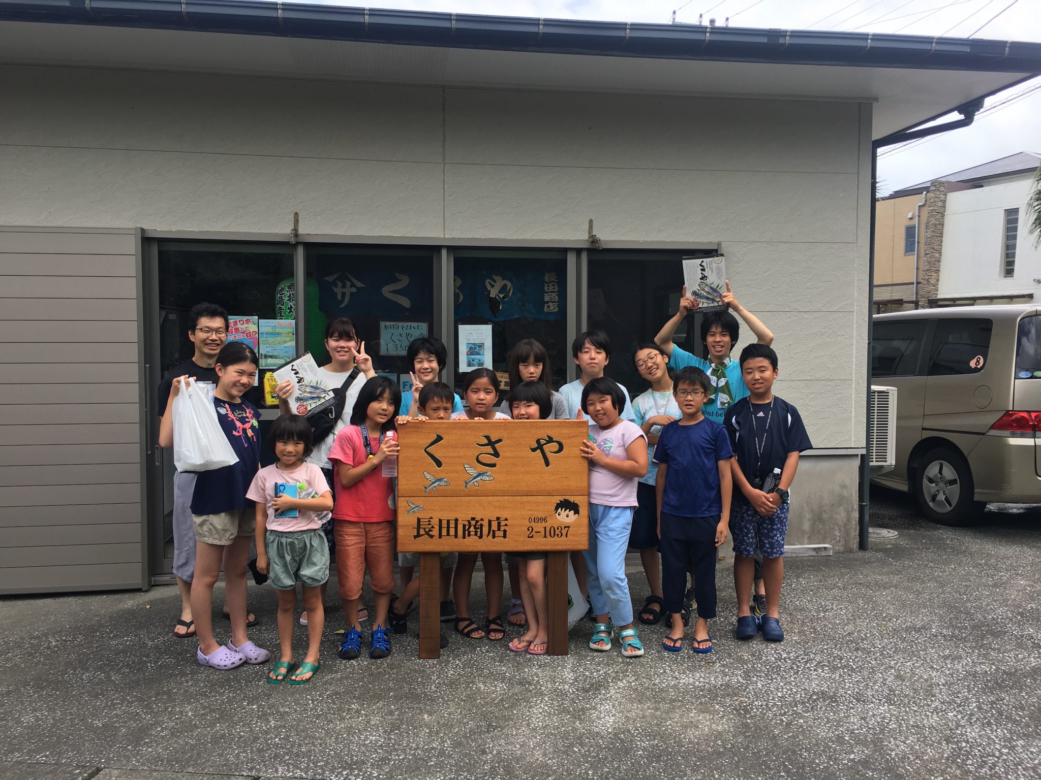 昨晩夜更かしした分、本日はゆっくり起きました。早く目覚めた子から、昨晩吊り上げたカサゴの煮付けをいただき、だんだんと目をさましました。 島の製パン店で朝食を選び、軽めの朝食を終えてくさや工場へ。長田商店のご主人より、くさやの作り方を教えていただきました。 リピーターの子たちは、長田商店のくさやの大ファン。今年もやはりうまいです。