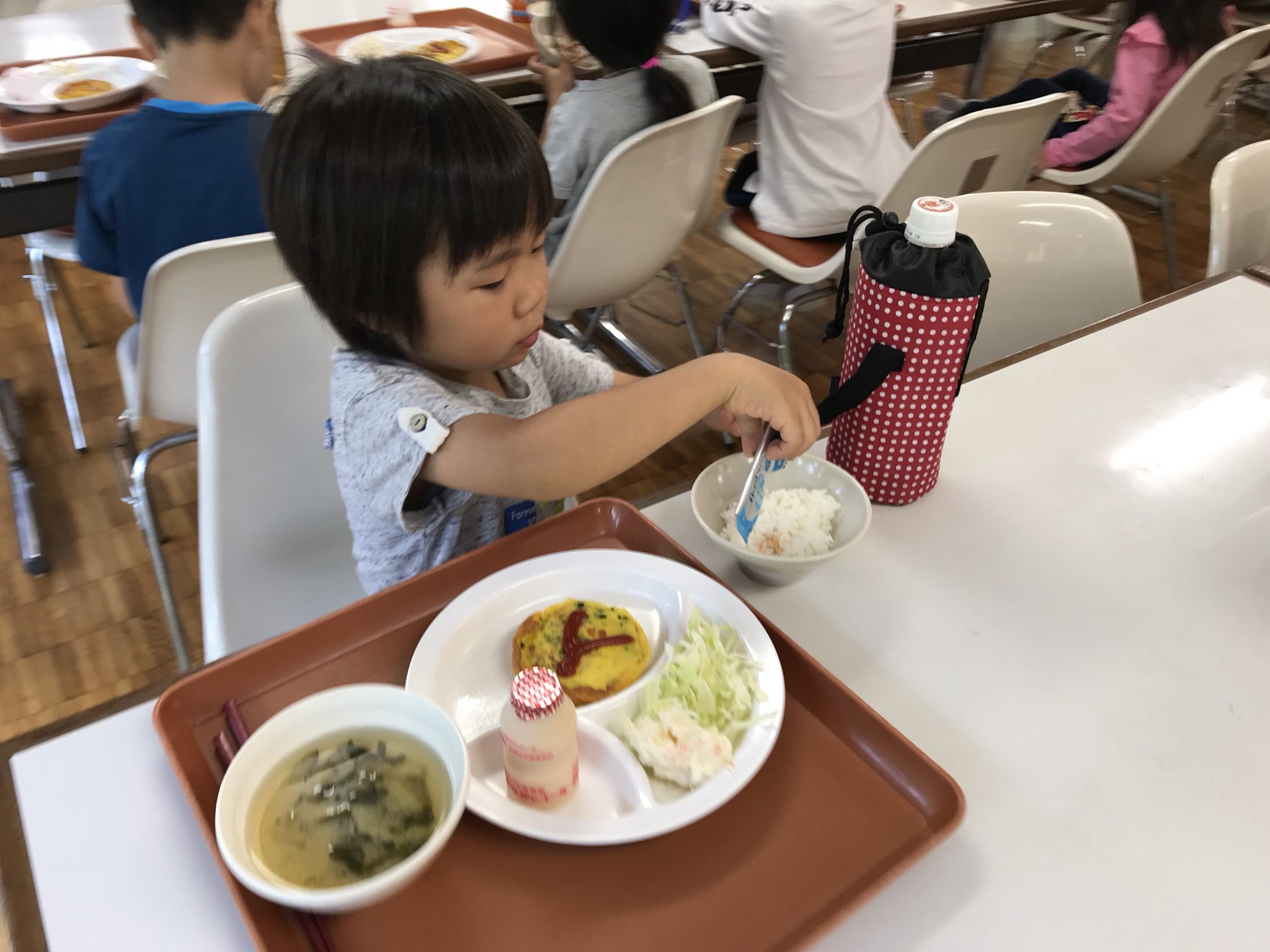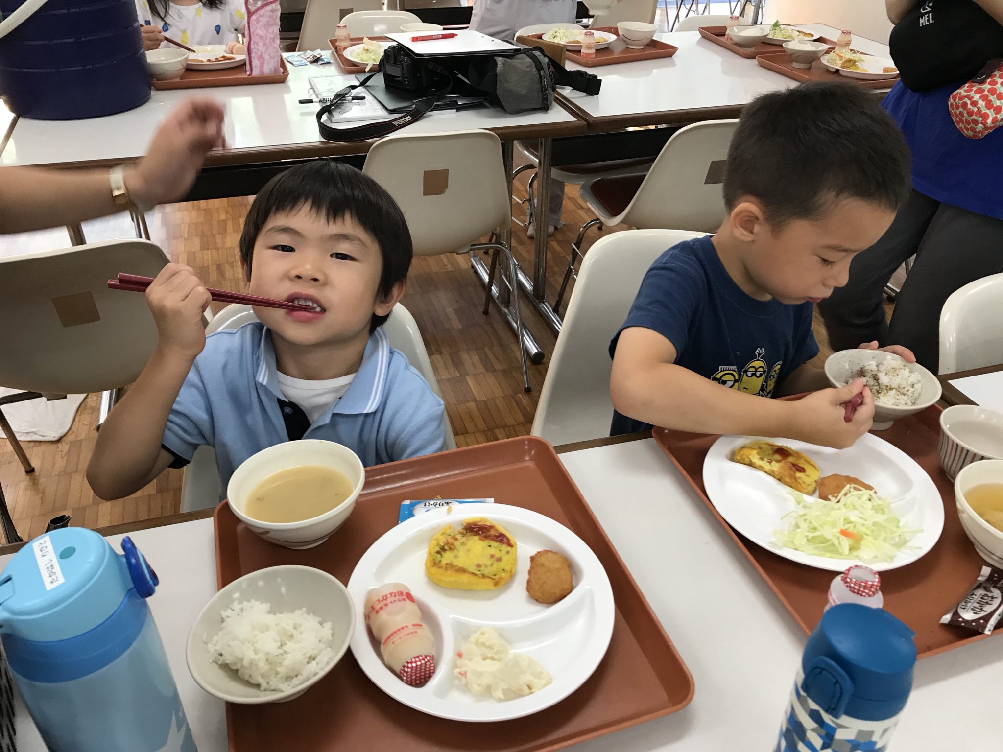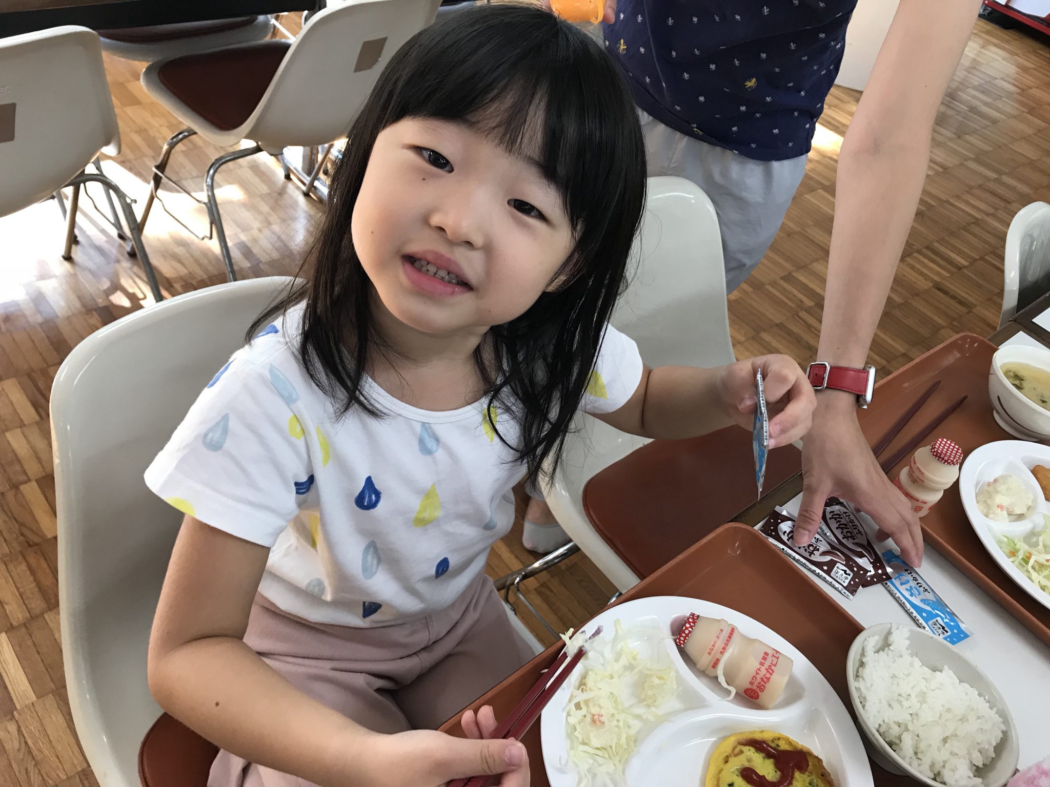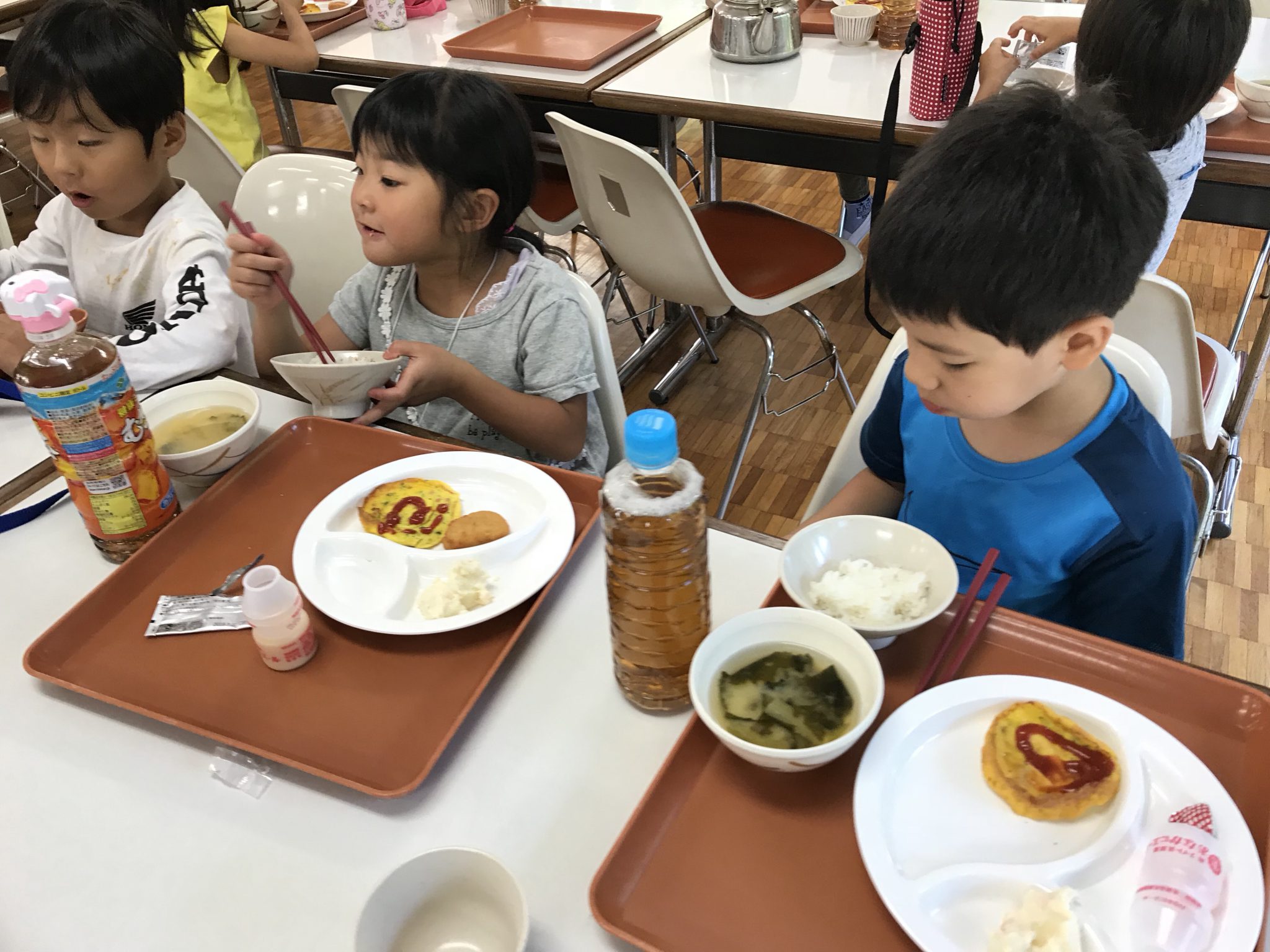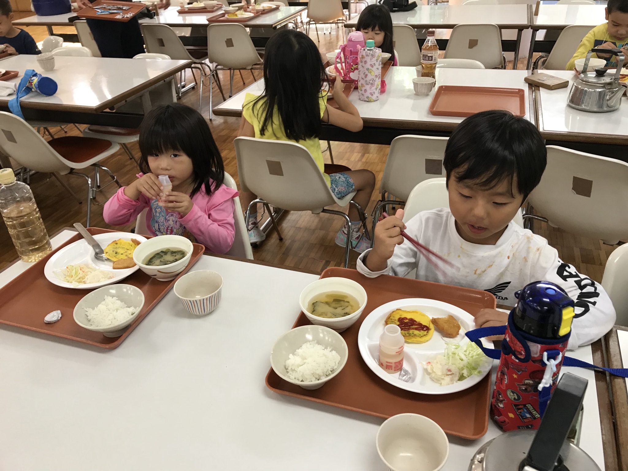 夏ちびメンバーは、朝6時に起き、お部屋の片付けをして朝ごはんを食べました! みんなで楽しく、美味しく食べました! この後はクラフトをします。