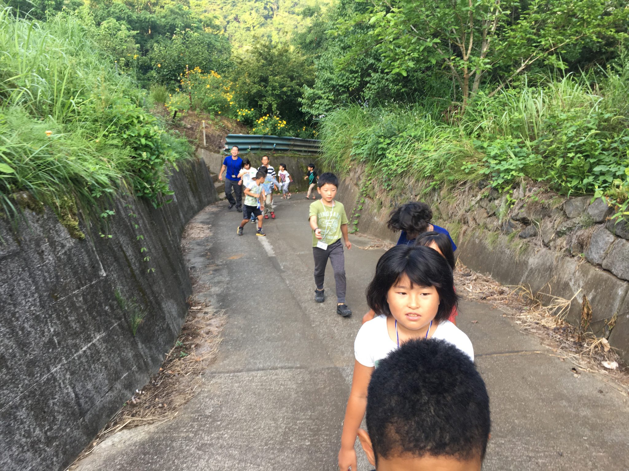 大月山村留学キャンプの一行は、朝6時にはほぼ全員が目覚め、自然に朝の会の時間が6時15分に早まりました。朝の気温は21℃くらい。少し朝靄がある中、近くの高台まで散歩しました。ここは こだま が響く場所で、一同 ヤッホー を楽しみました。 これから朝食作り、集落のご近所すんからキュウリとトマトの差し入れももらい、食卓が充実しそうです!
