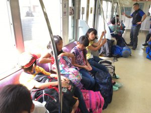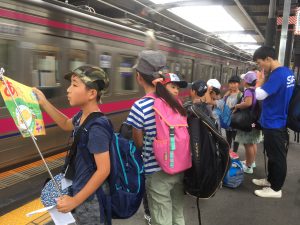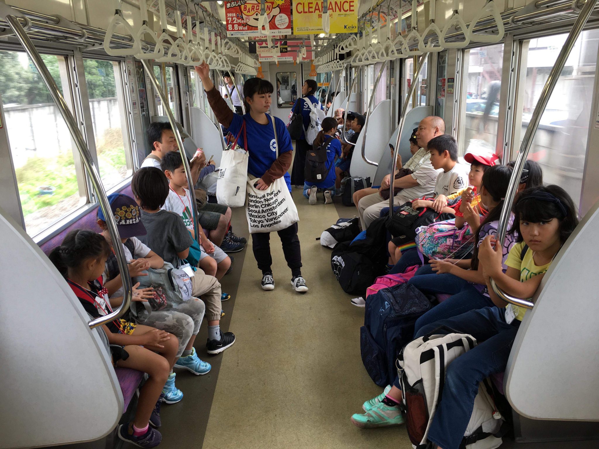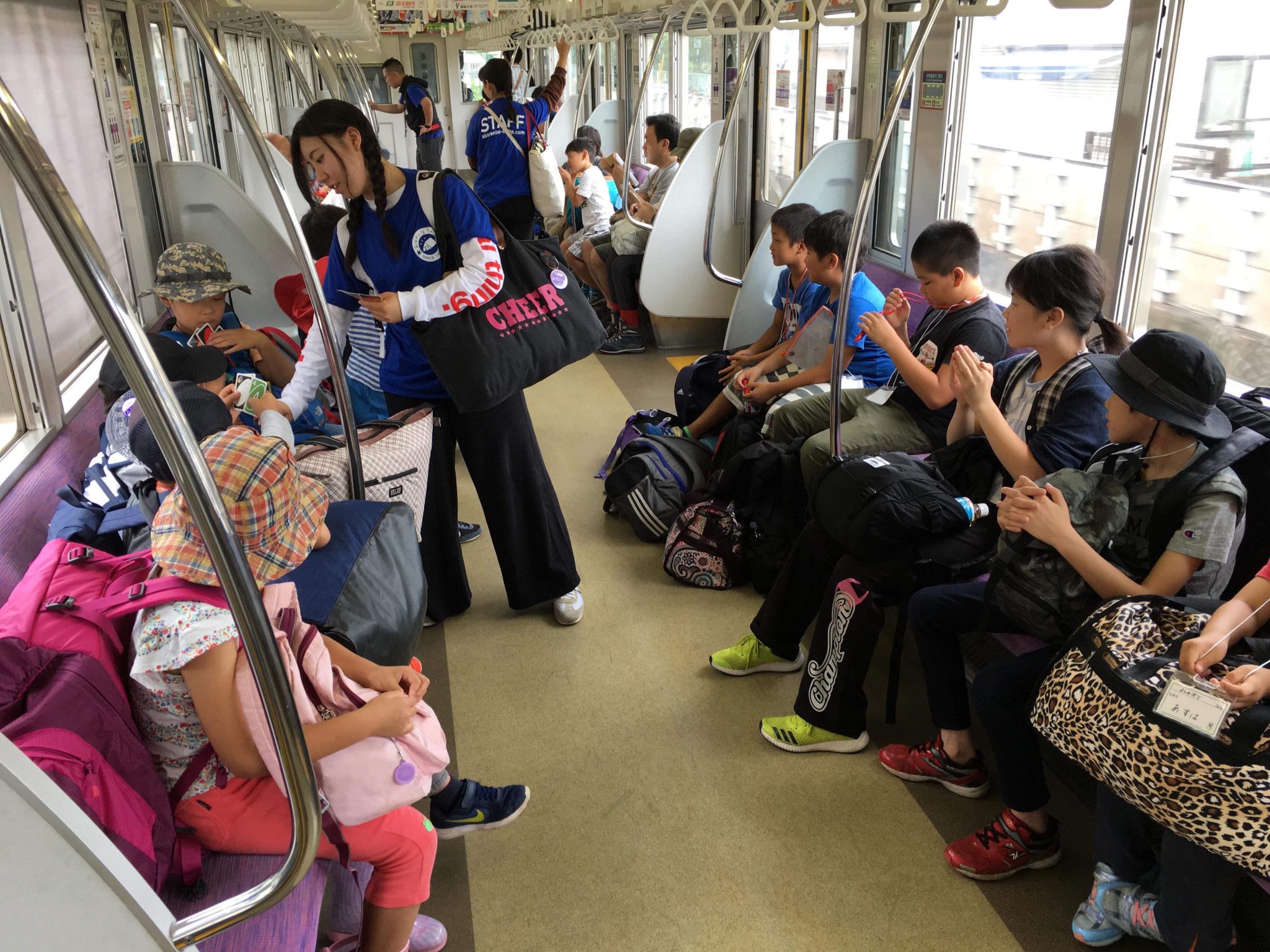 大月里山体験キャンプ一行は、電車に乗り山梨県大月市にある「みんなの家」まで移動を始めました。