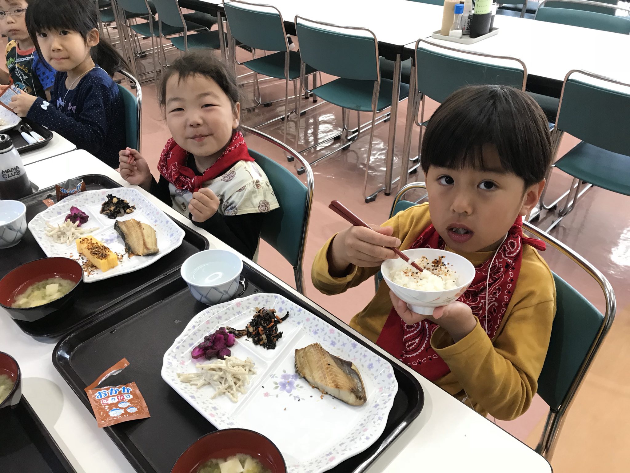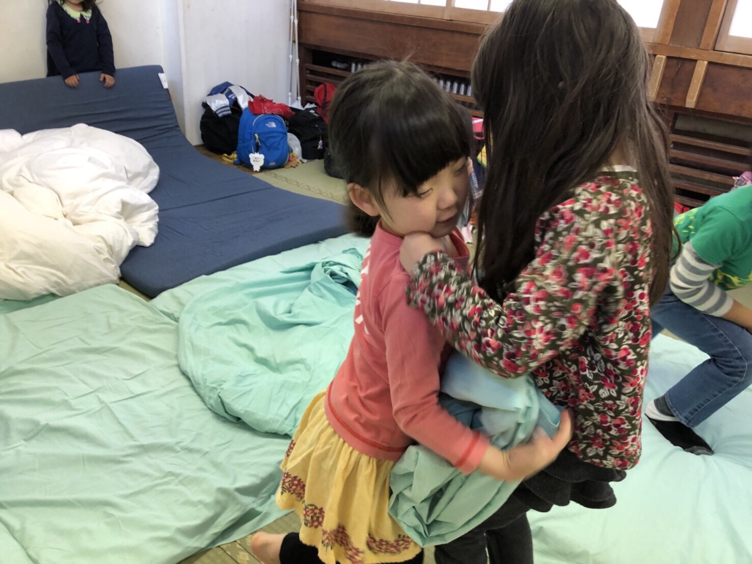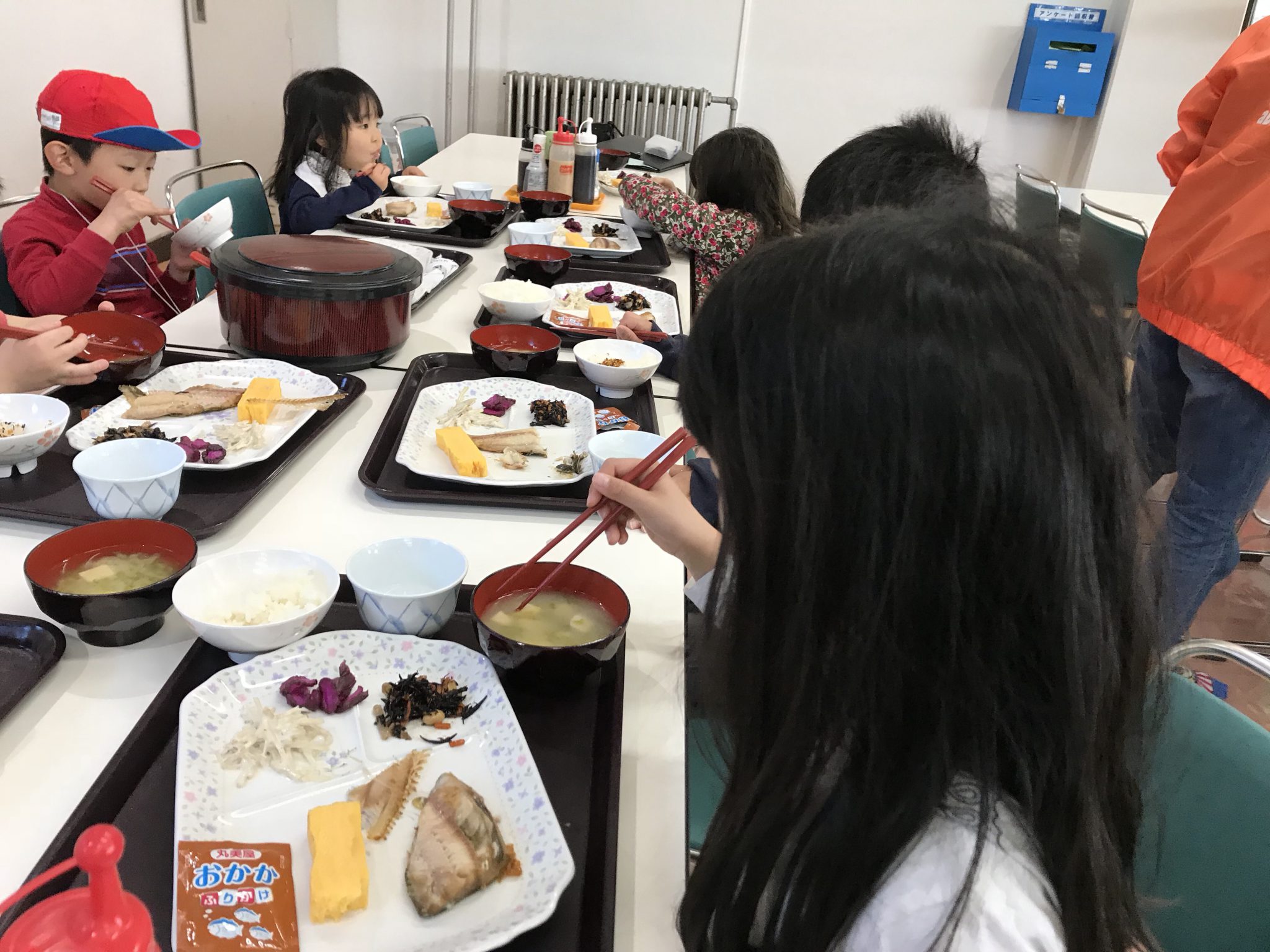春ちびメンバーは2日目スタートです! 頑張って布団をたたみ、朝ごはん! 今日もみんな元気です! もりもり食べよう。