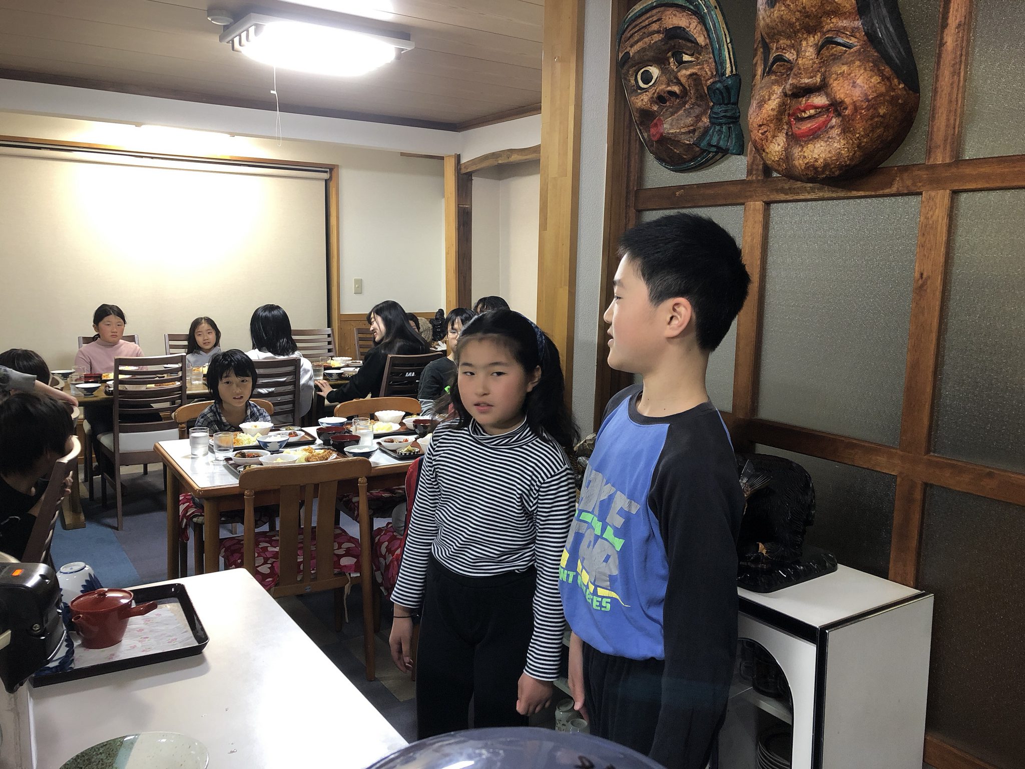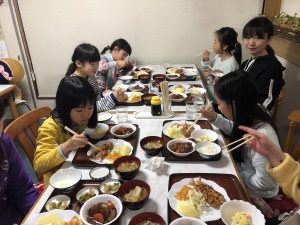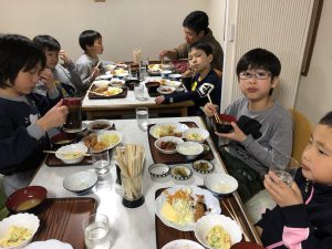 春スキーメンバーは夕飯をいただき、全員でお楽しみタイム!