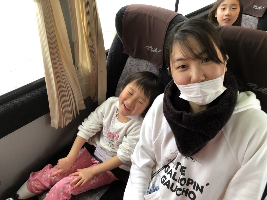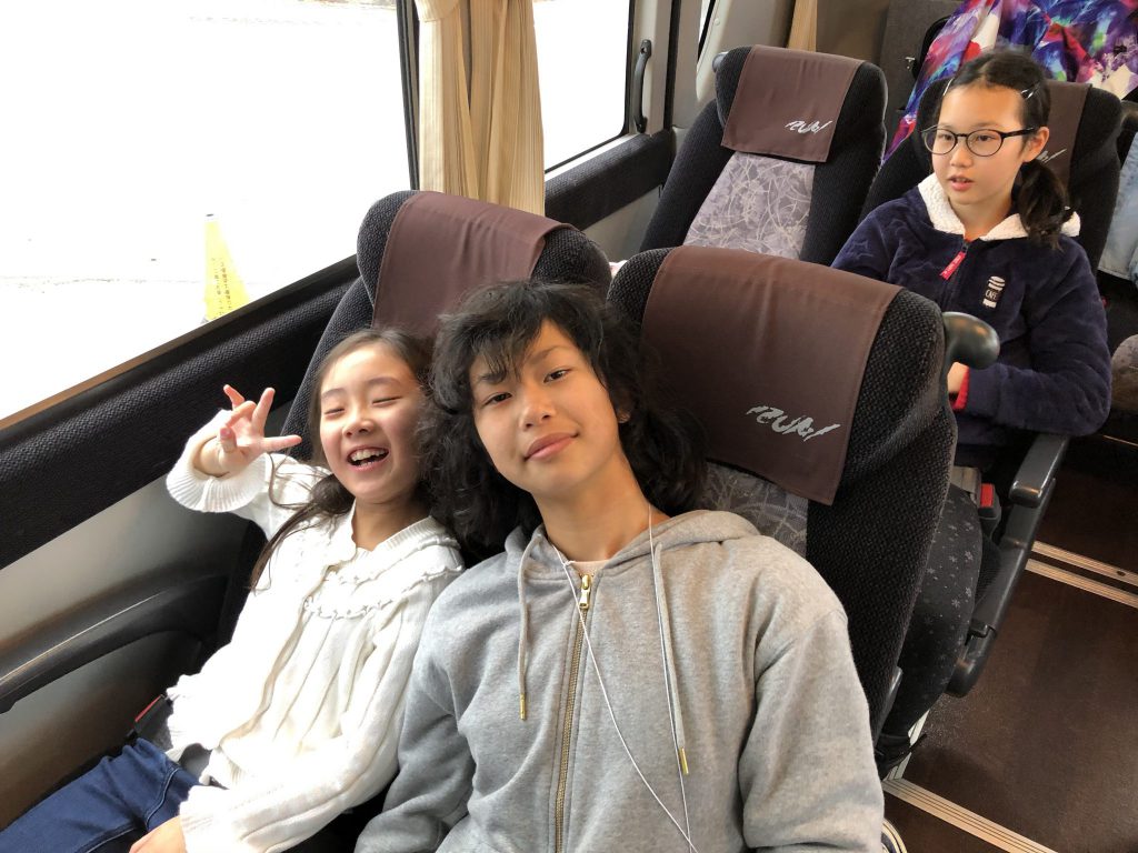 バスの中ではDVDを見たり15時のおやつタイムを取ったりして、ゆったり過ごしています。
