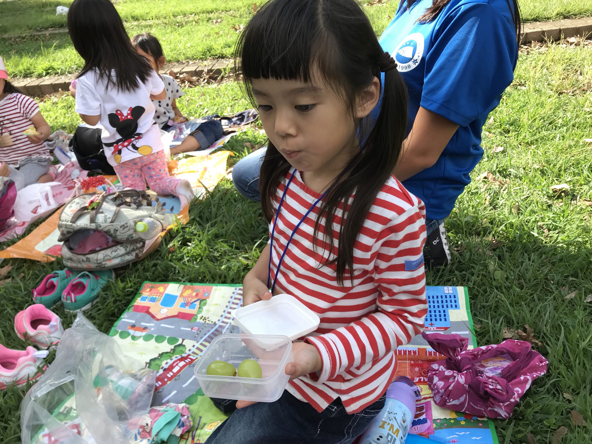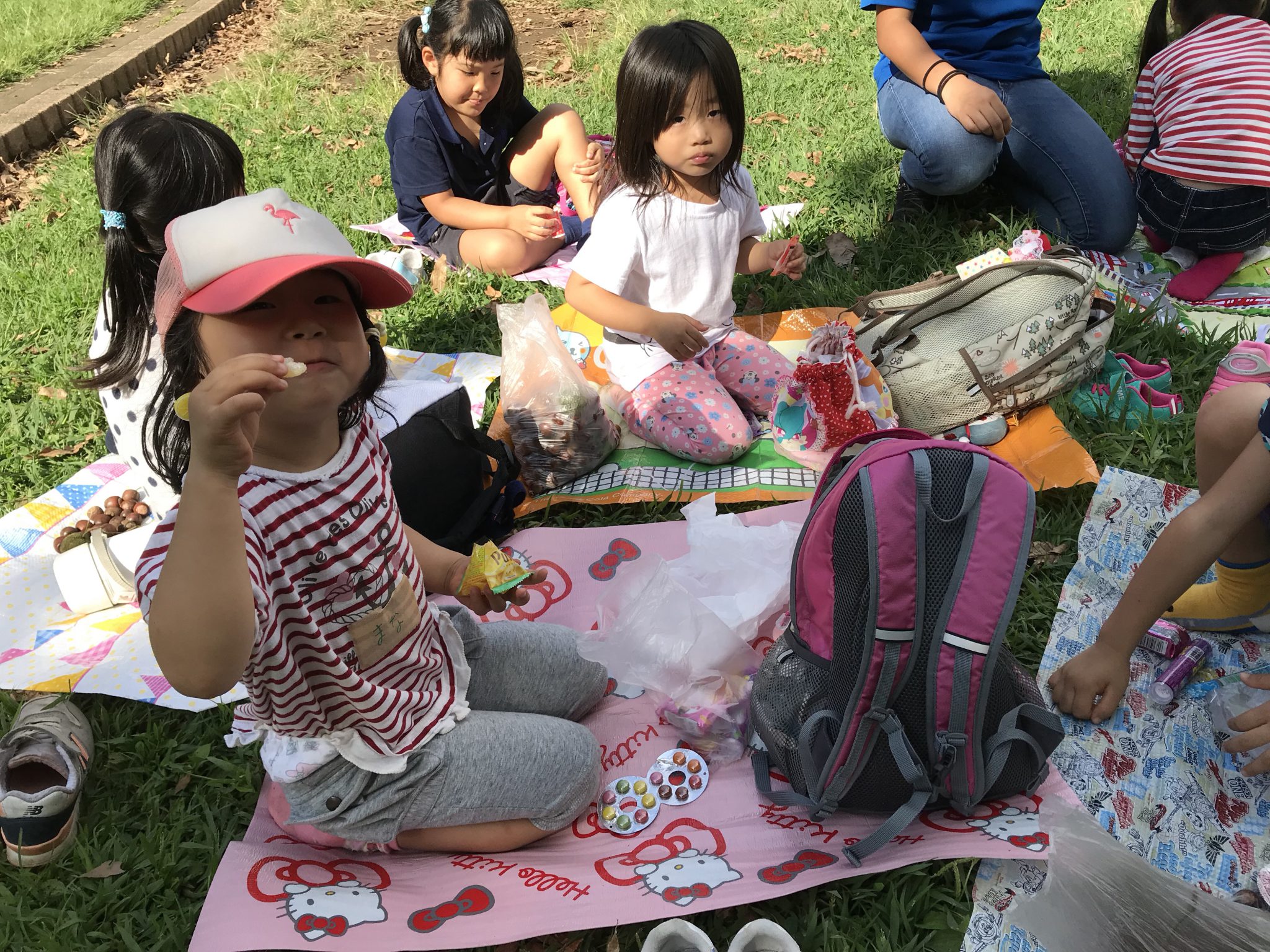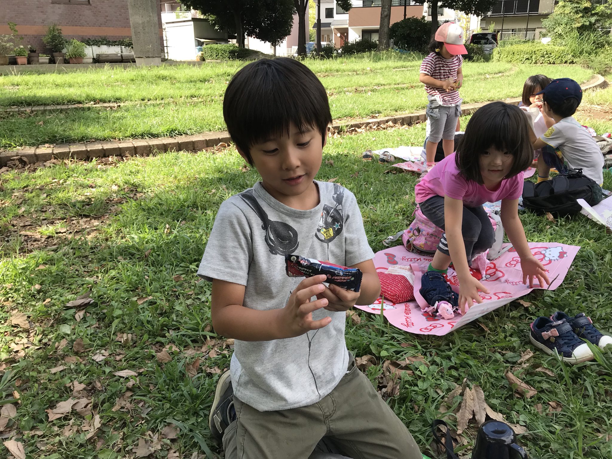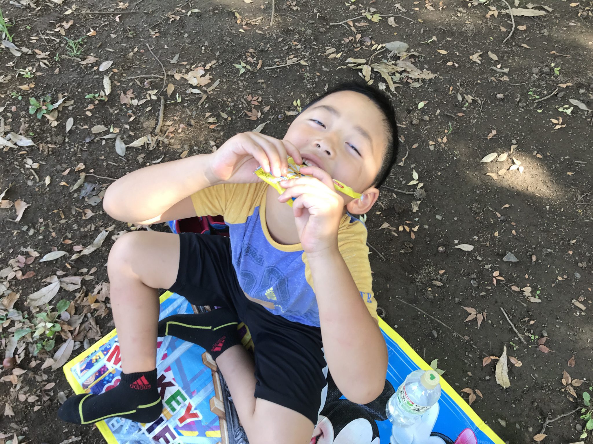 森のようちえんメンバーは、午後もたくさん遊び、おやつタイムにしています。 たくさん遊んだのでお腹が空いたみたいです。 みんなで仲良く食べてます。