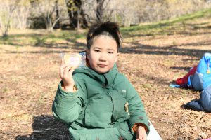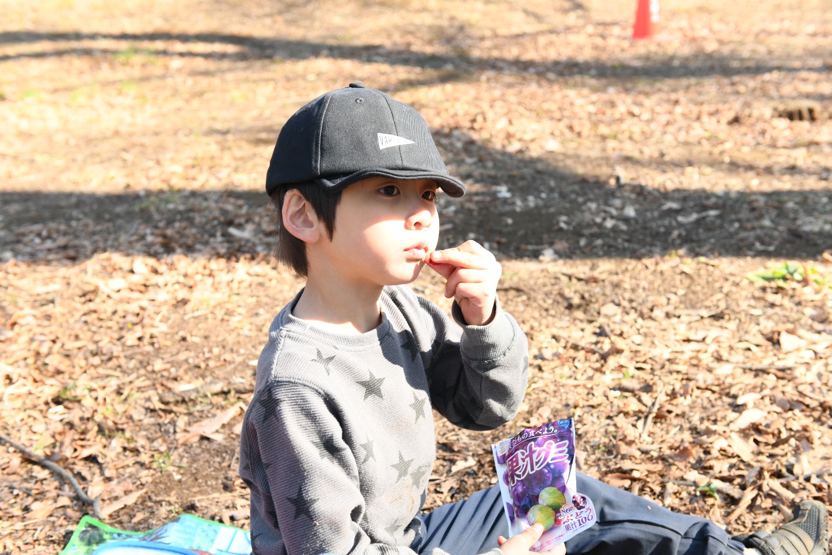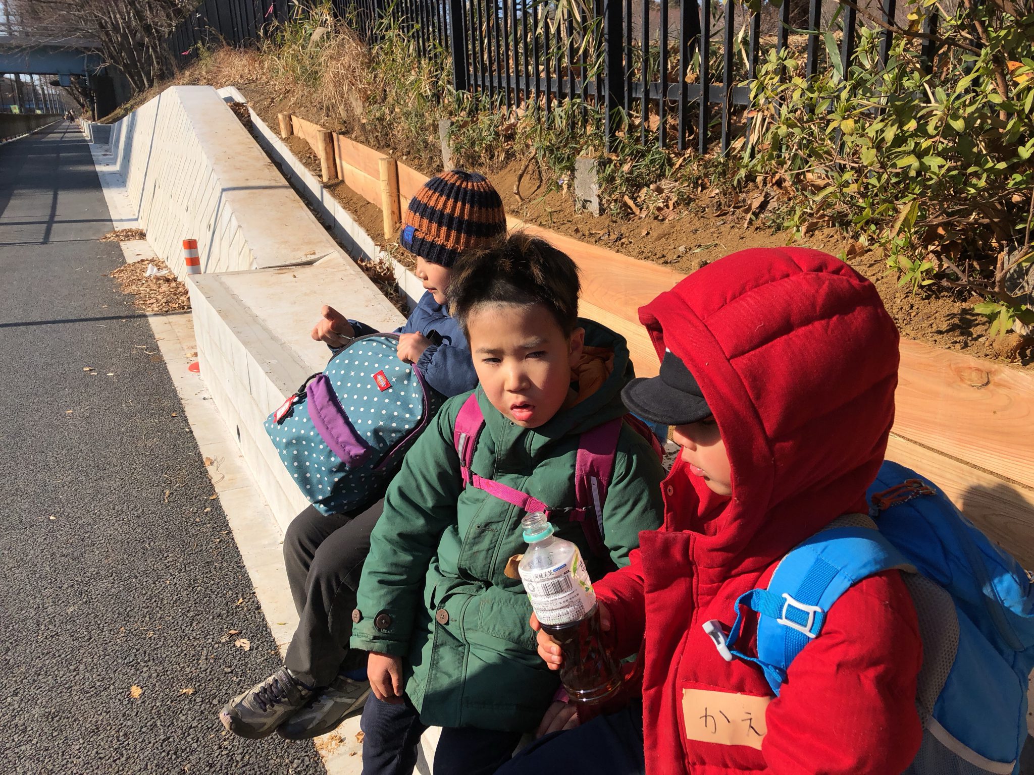 森のようちえんメンバーは公園でおやつタイムと認定式を終え、公園を出発しました!