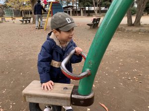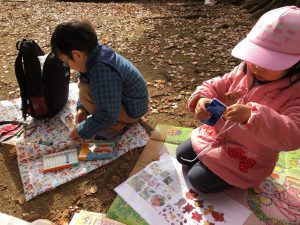 落ち葉の絵本を読んだ後、公園遊びを始めました。