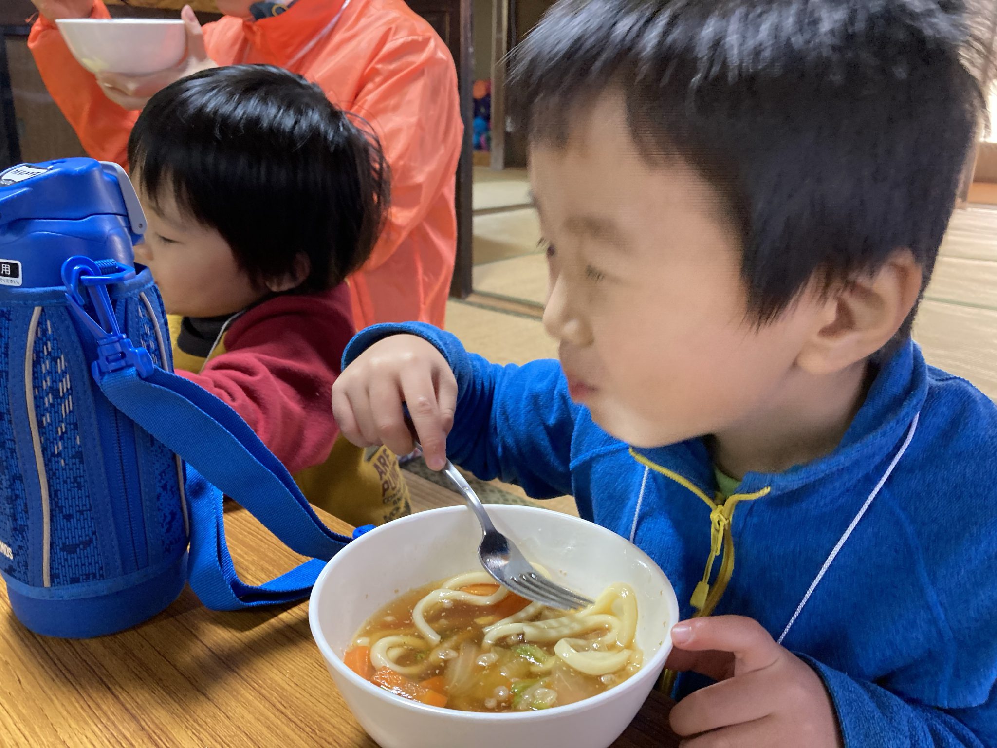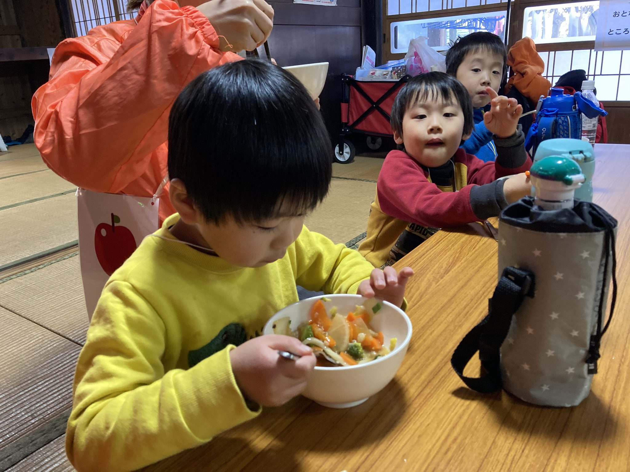 森のようちえんメンバーはお昼ご飯を食べて午後も元気に遊んでいます。