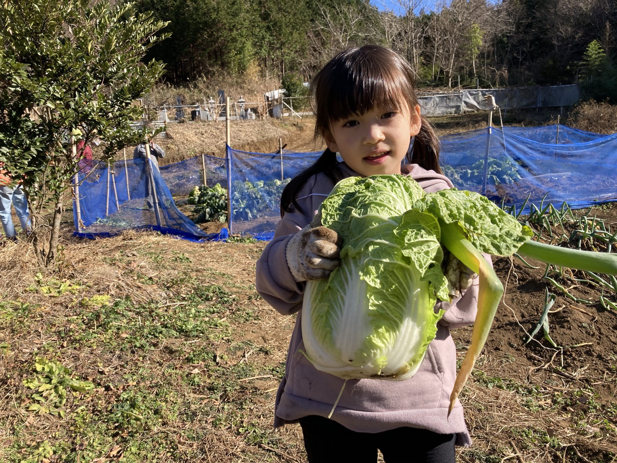 古民家裏にあるあばれんぼキャンプの畑で、ネギと白菜を収穫しました^ ^