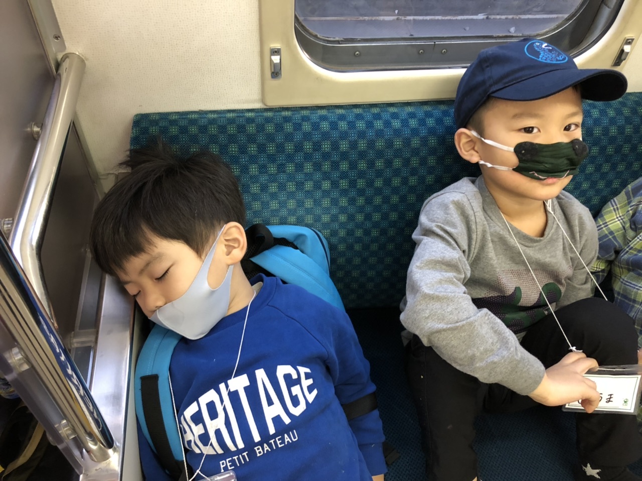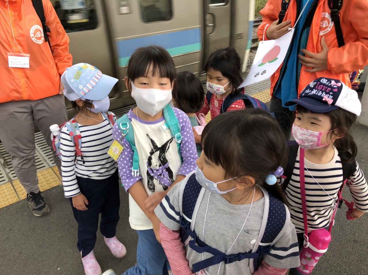 森のようちえんメンバーは電車を乗り継ぎ高尾駅に到着しました。