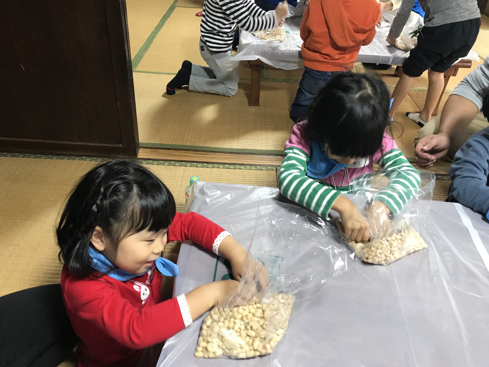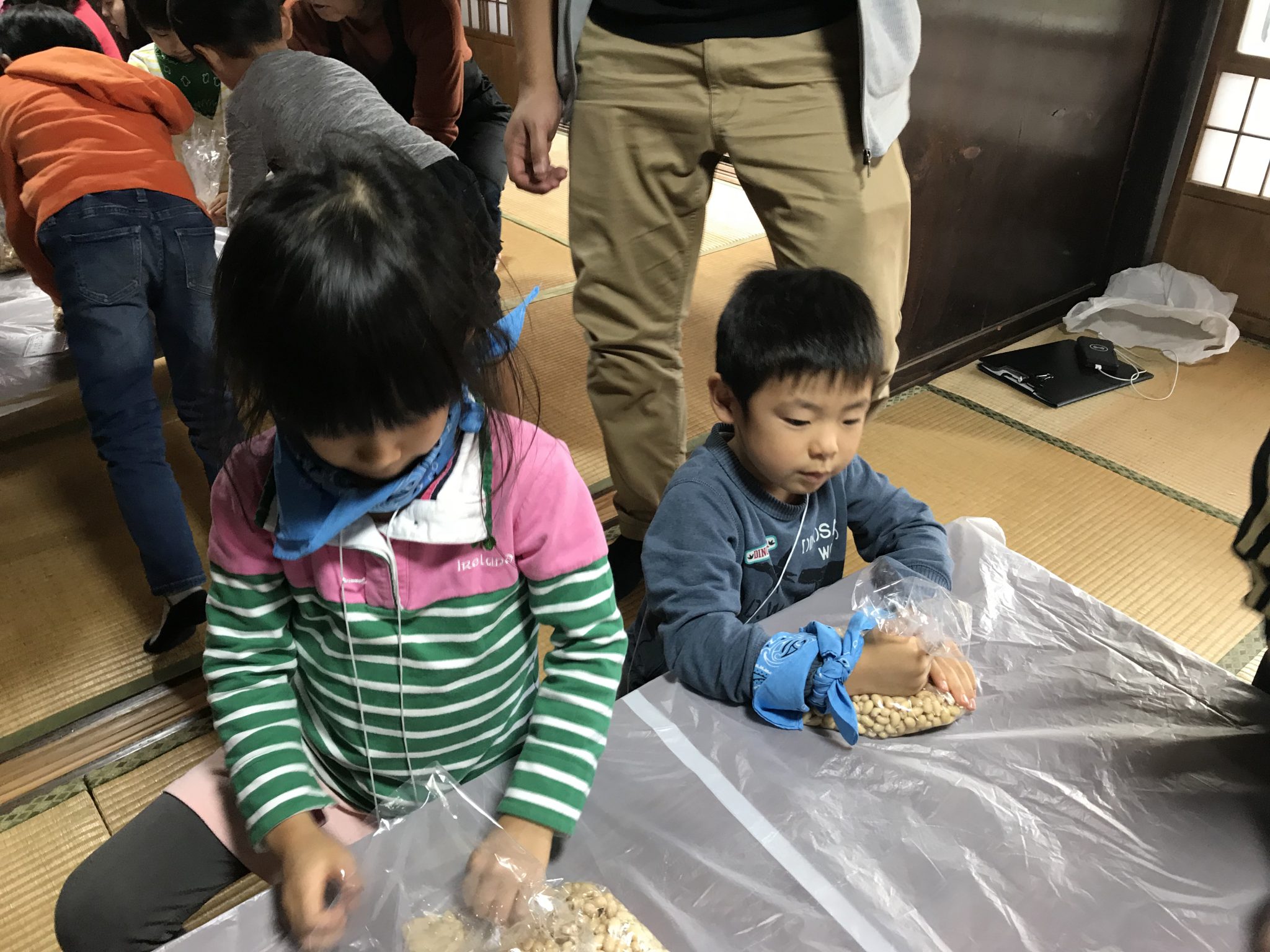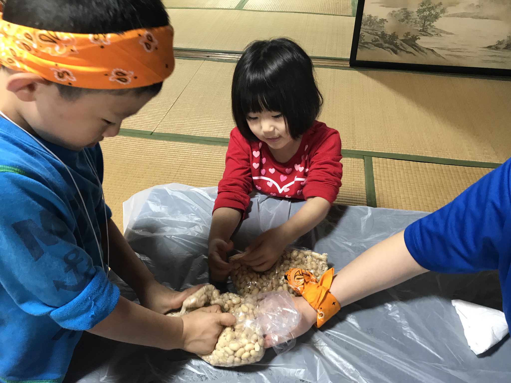 秋ちびメンバーは、味噌作りを始めました! 美味しい味噌ができますように! 10ヶ月ほど発酵させて美味しい味噌を作ります。