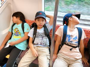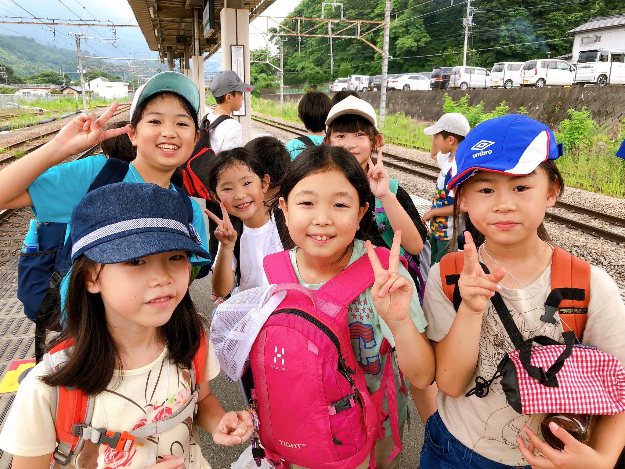 里山サマーメンバーは古民家を出発し、電車に乗りました。