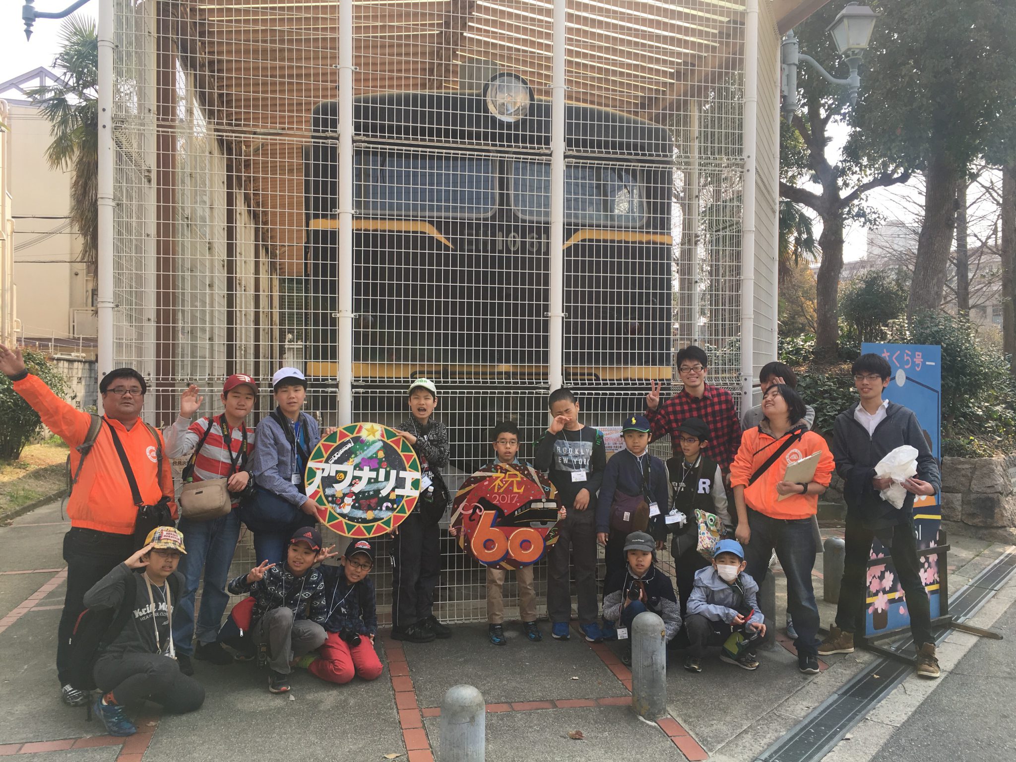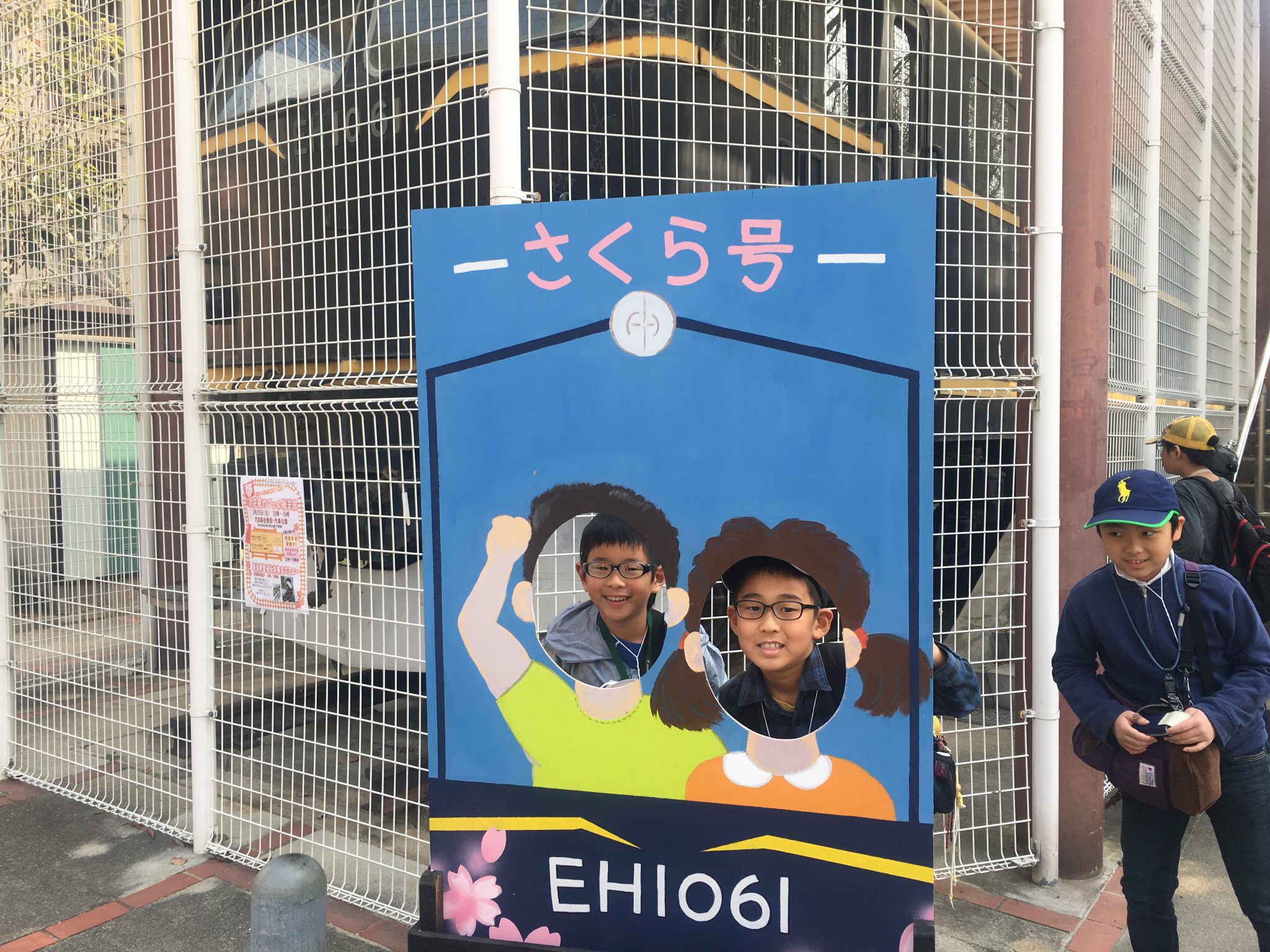 鉄道人キャンプの一行は、南海、市営地下鉄、阪急の電車を乗り継いで阪急 淡路駅に参りました。 近くにある東淡路南公園に、現存最後の一台となった貨物車両の展示が行われており、どうしても見たいとのこと。偶然、地域の青年団の方が公園で野外カフェ企画を準備しておられ、展示車両の説明や、倉庫に保存されているヘッドマーク、顔ぬき看板を見せてくれました。 子どもたちの鉄の熱が伝わりました! ありがとうございました。
