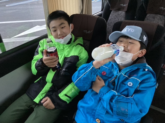 子どもたちはSAでお買い物したおやつを食べたり、DVDを見たりして過ごしています。