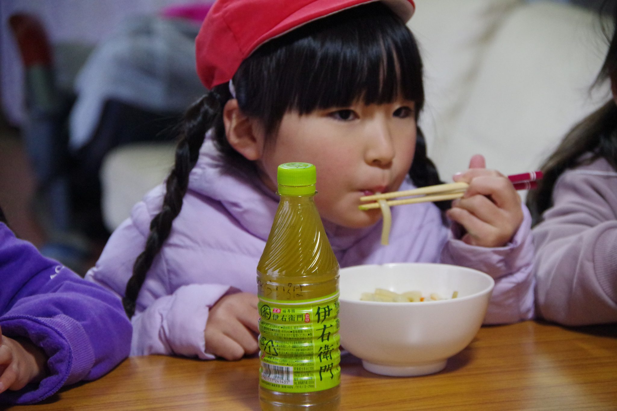 子どもたちが畑で収穫した野菜をたっぷり使ったうどんをお昼ごはんとしていただき、午後の活動へ!