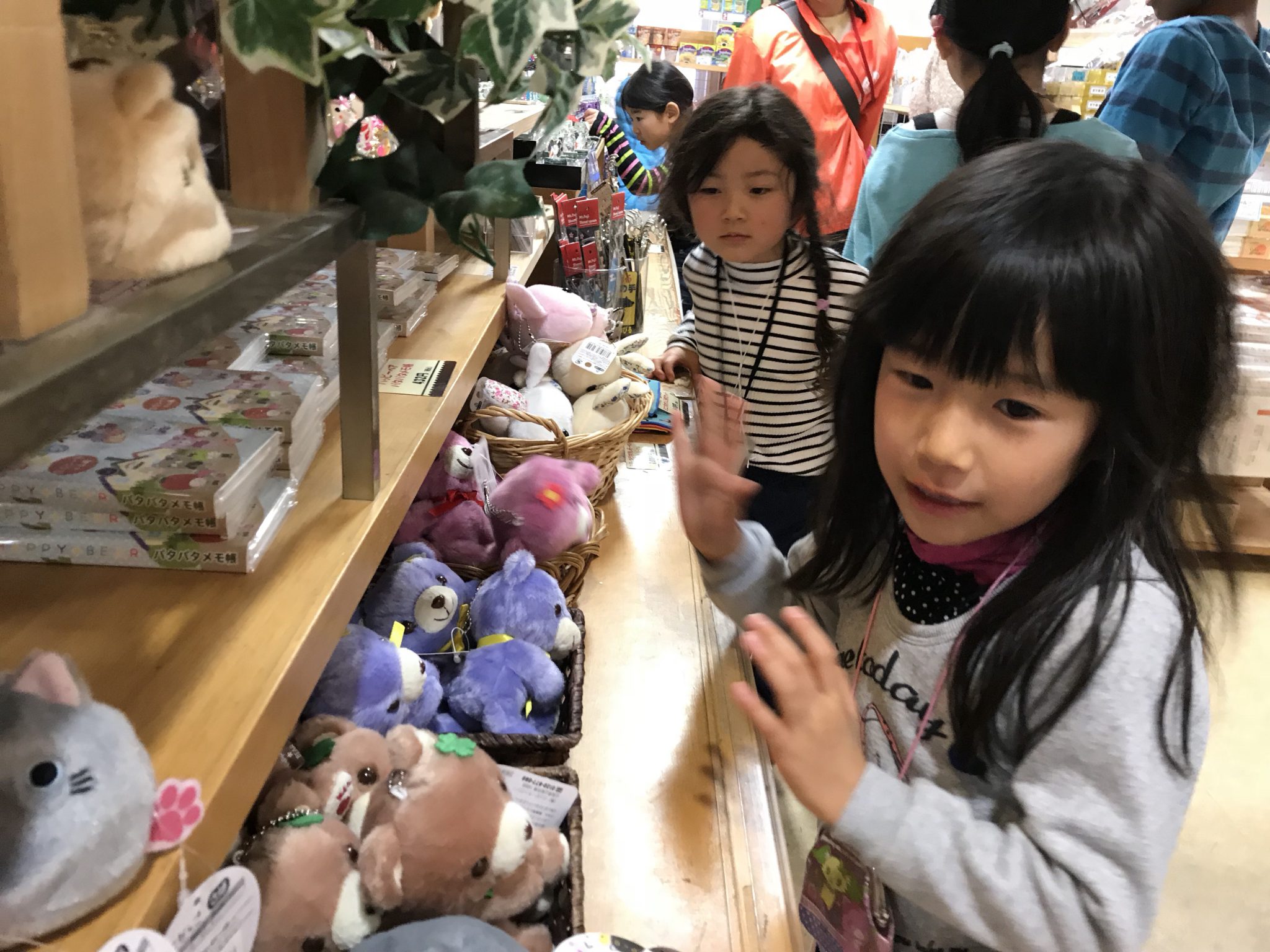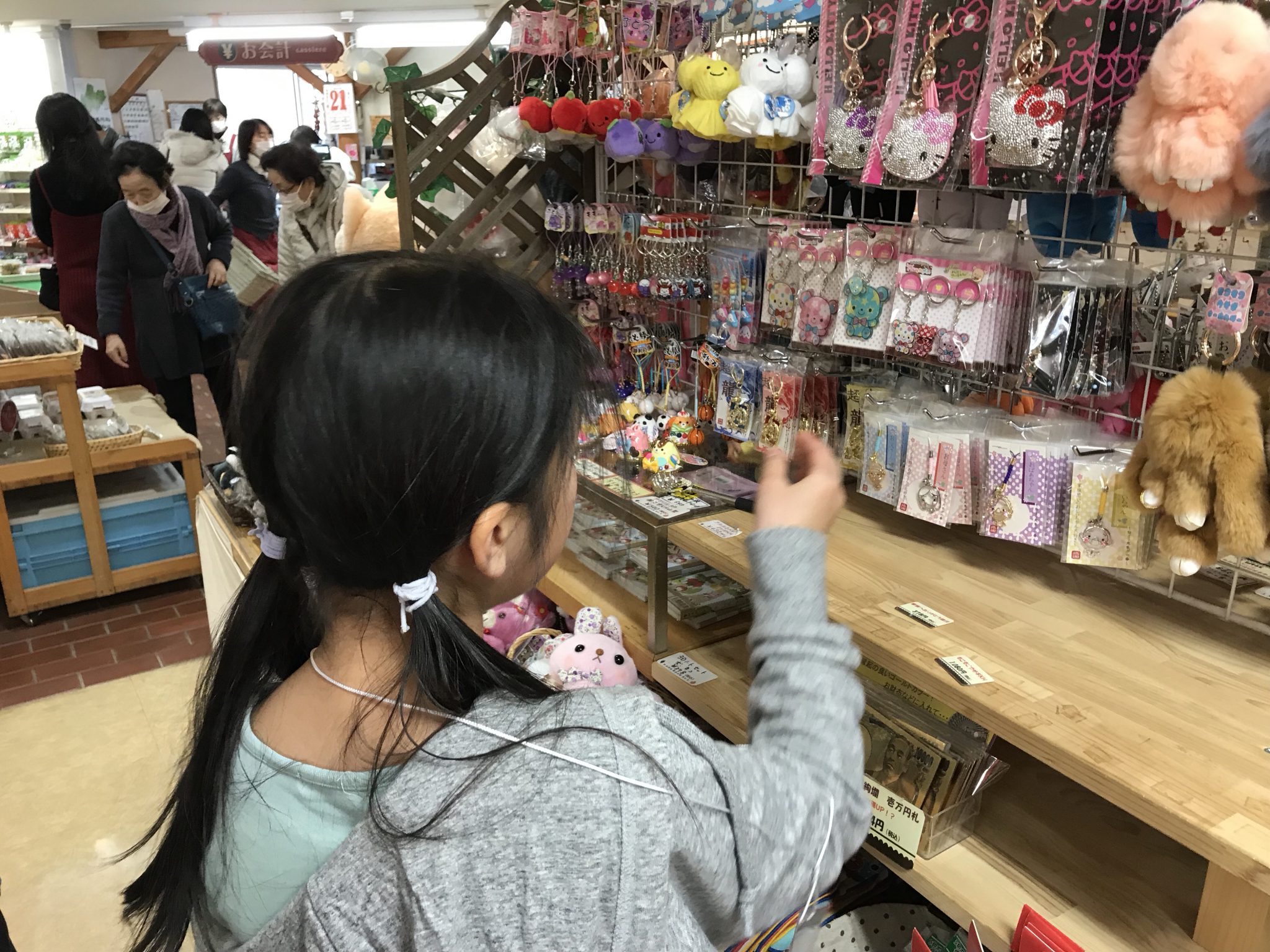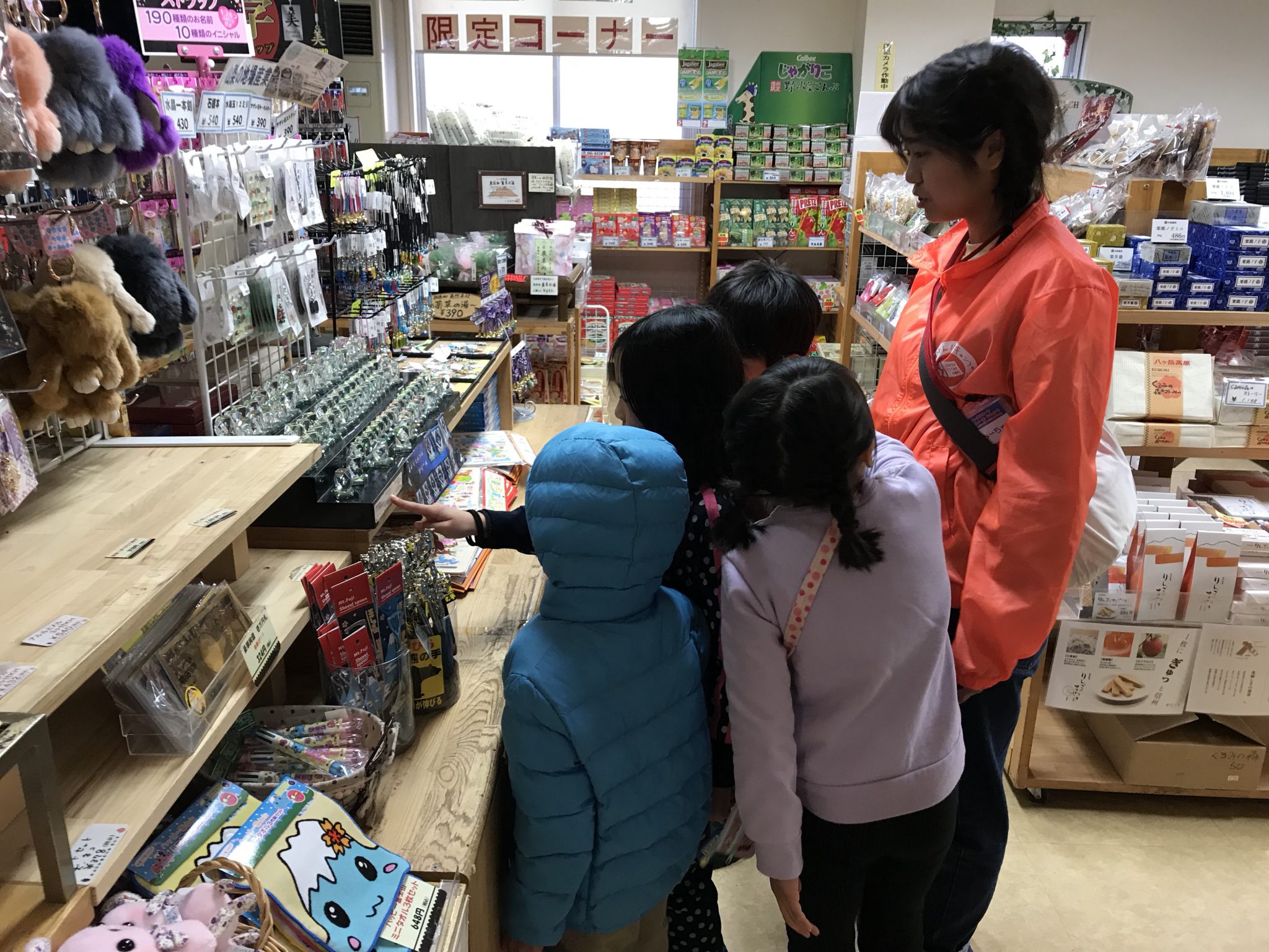 ちびっ子・キッズスキーメンバーはバスに乗り、宿を出発しました。 今はお土産を選んでいます。 キーホルダーやお菓子を家族のため、兄弟姉妹のため、自分のため、どれにしようか悩んでいます。 この後は高速に乗り、東京へ向かいます。