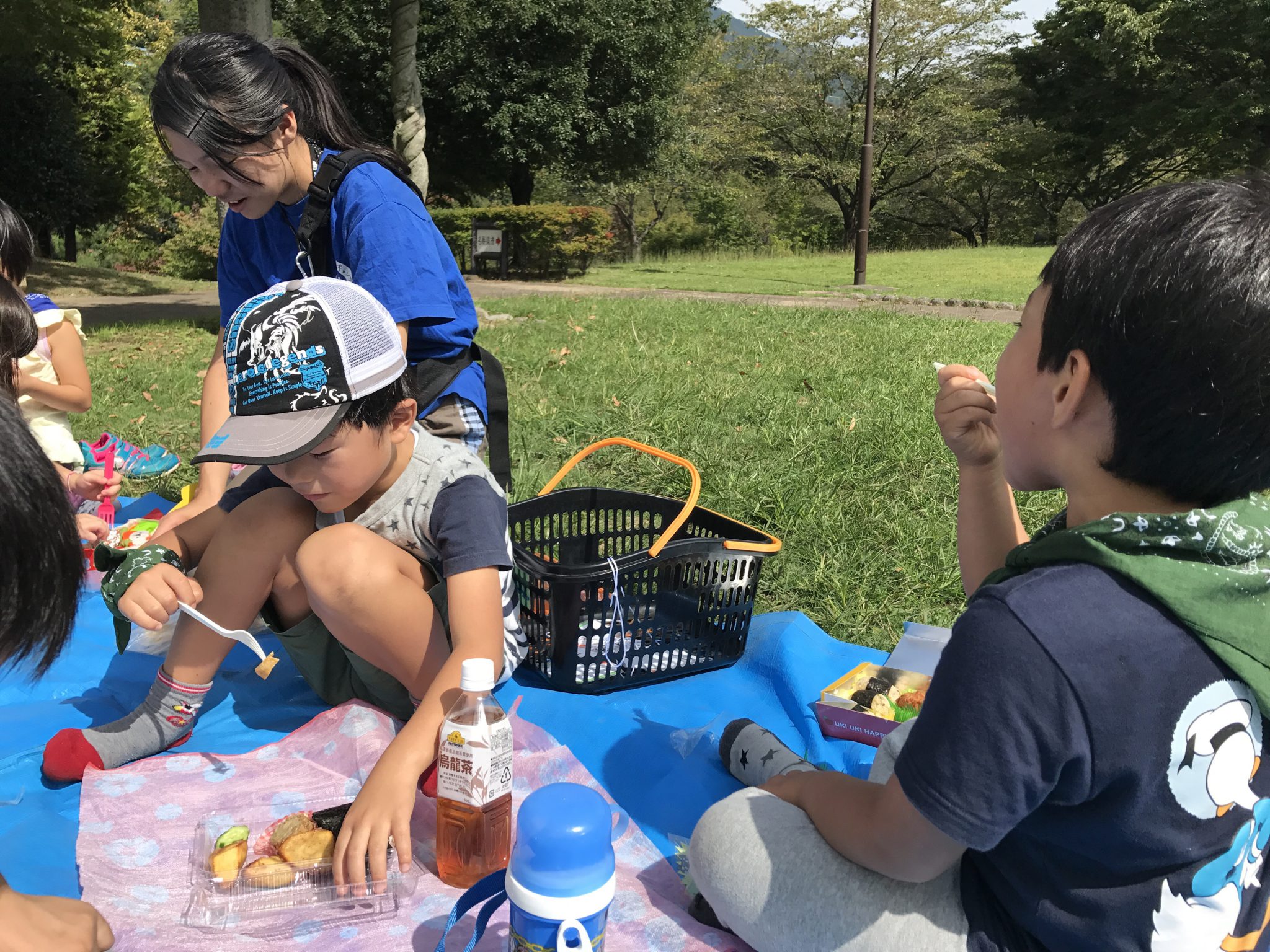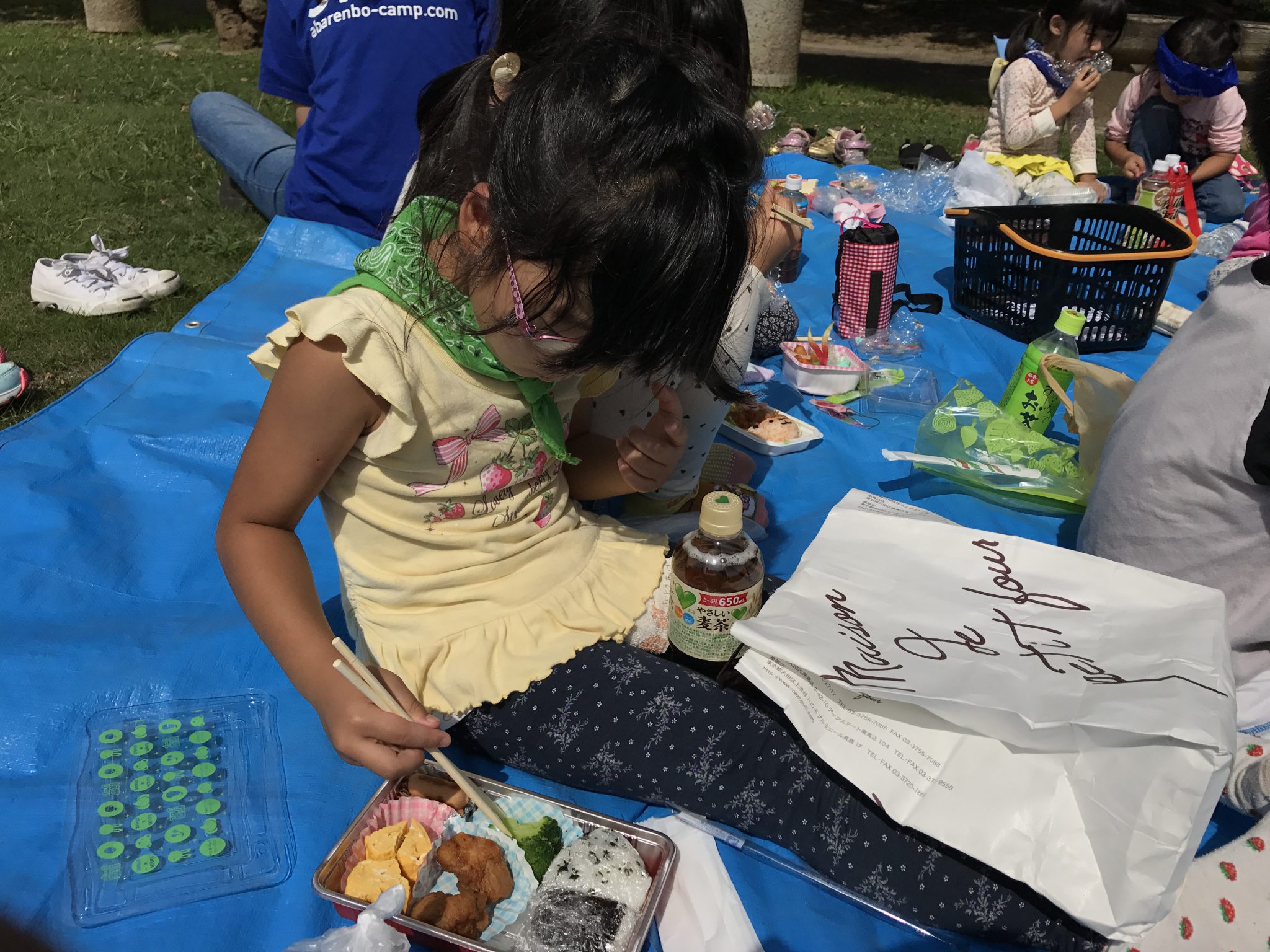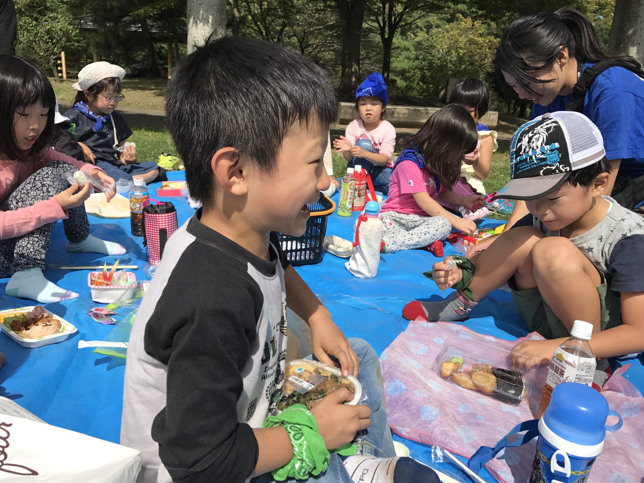 いつもあばれんぼキャンプブログをご覧いただきありがとうございます。 秋ちびメンバーは公園で遊び、みんなでお昼ご飯を食べています! この後は着替えてボート体験です。