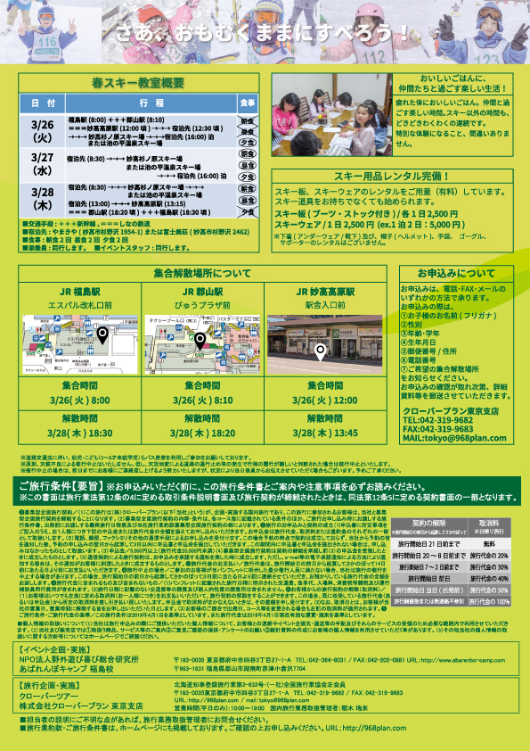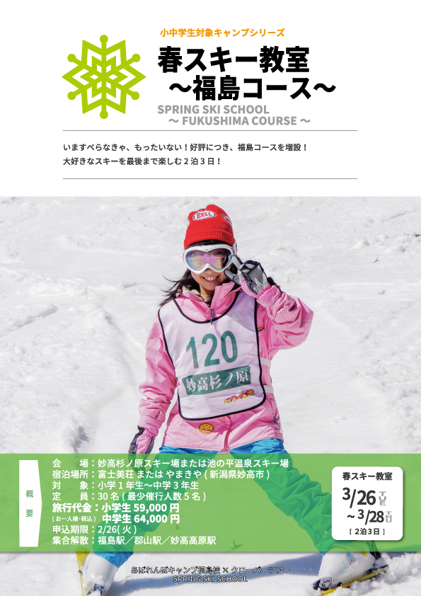 春スキー教室はたくさんの方にご参加いただけるよう福島コースを開設しました!