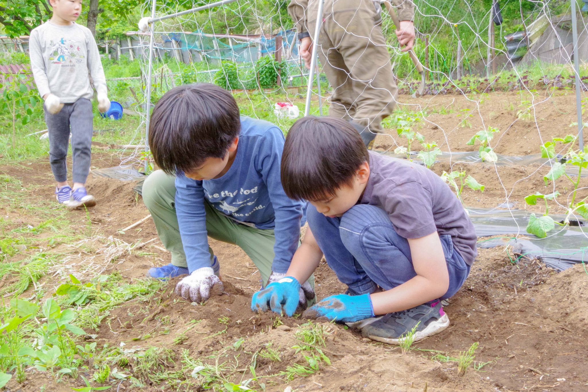 原風景の残る自然豊かな里山で、自然遊び、たき火、農作業、野菜収穫など、地域の方と交流しながら里山をまるごと体験します!