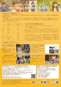 長期キャンプが不安な方は、比較的近場で泊数の短いこの大月里山サマーキャンプにぜひご参加ください。