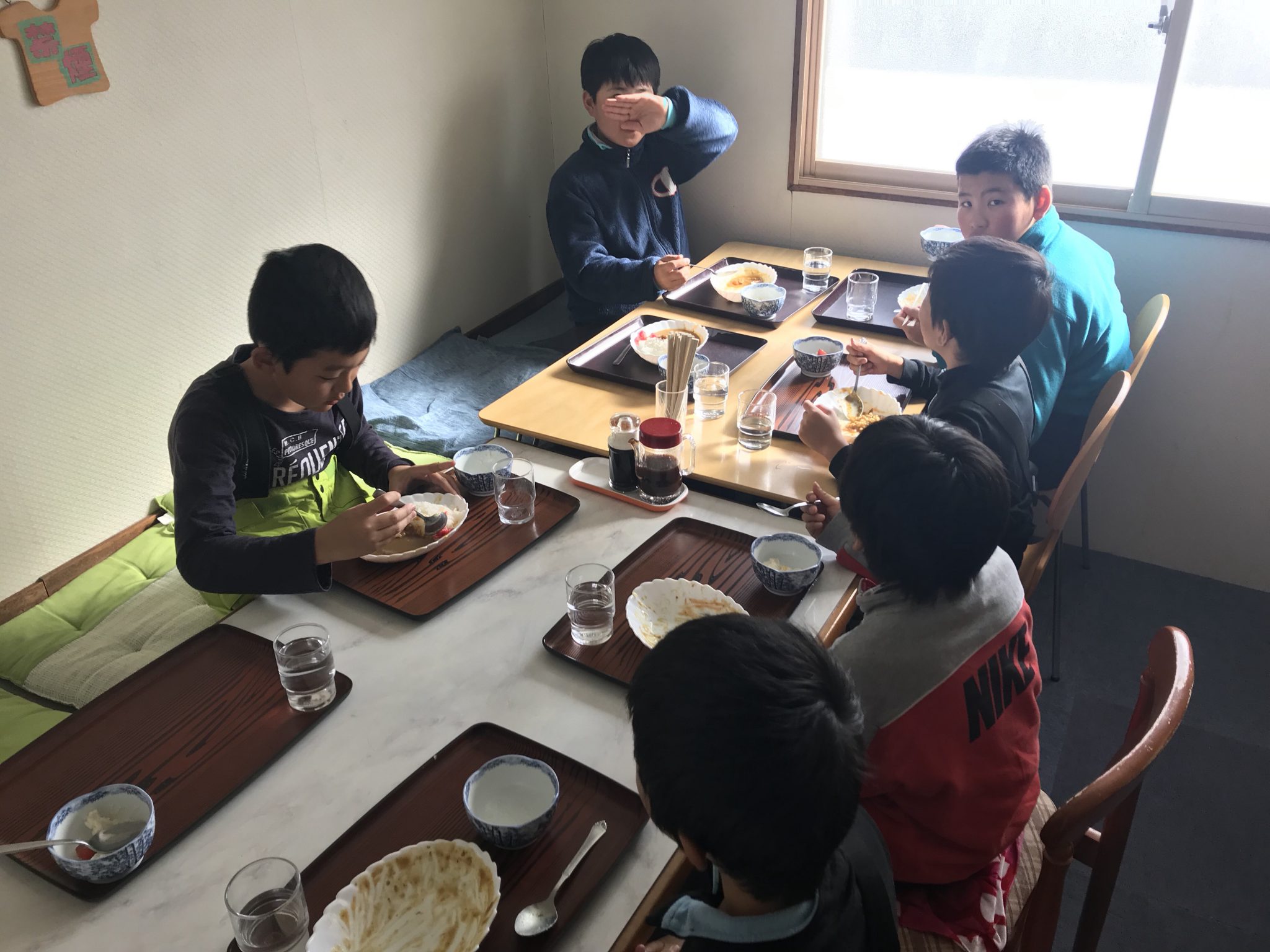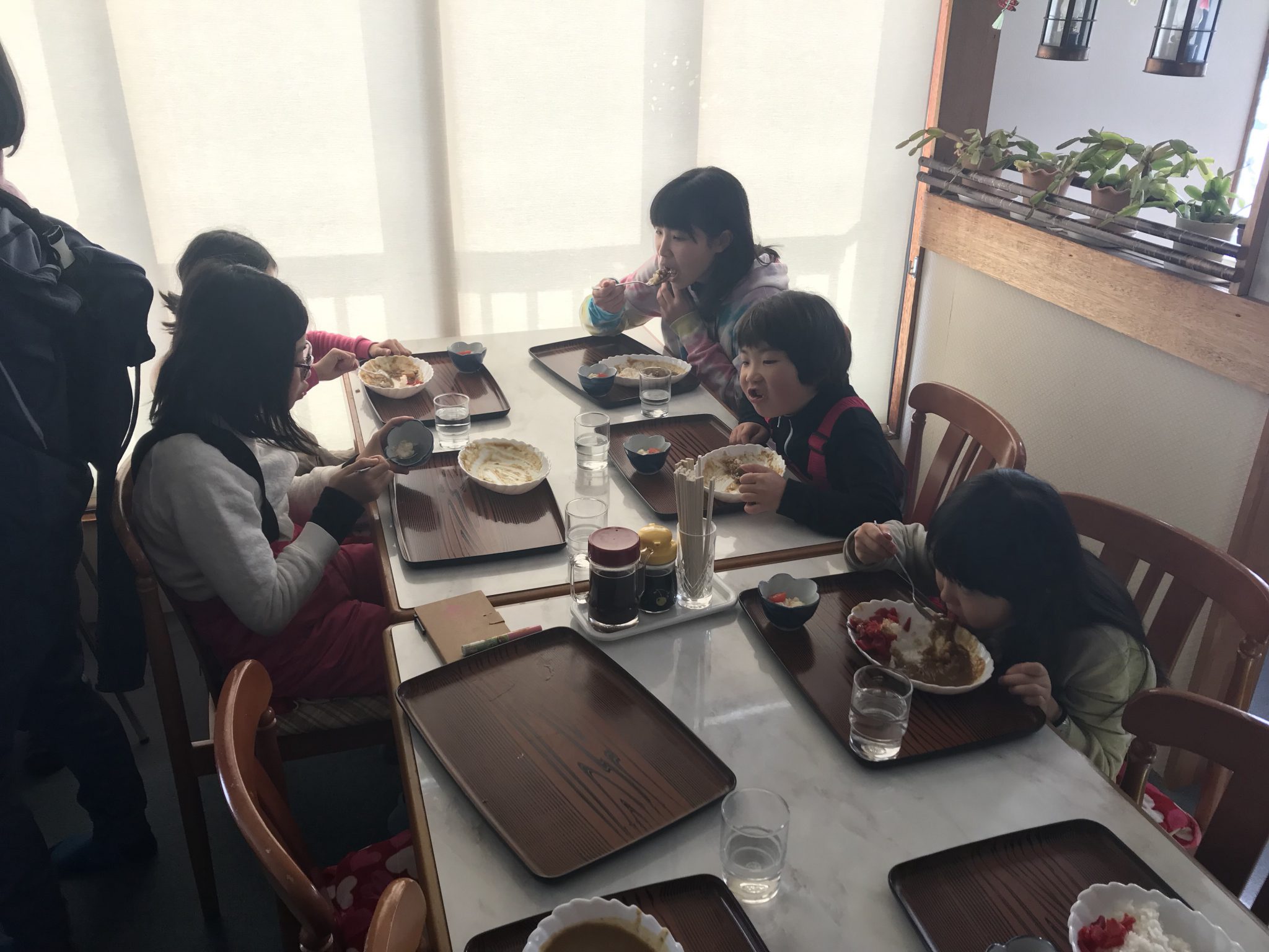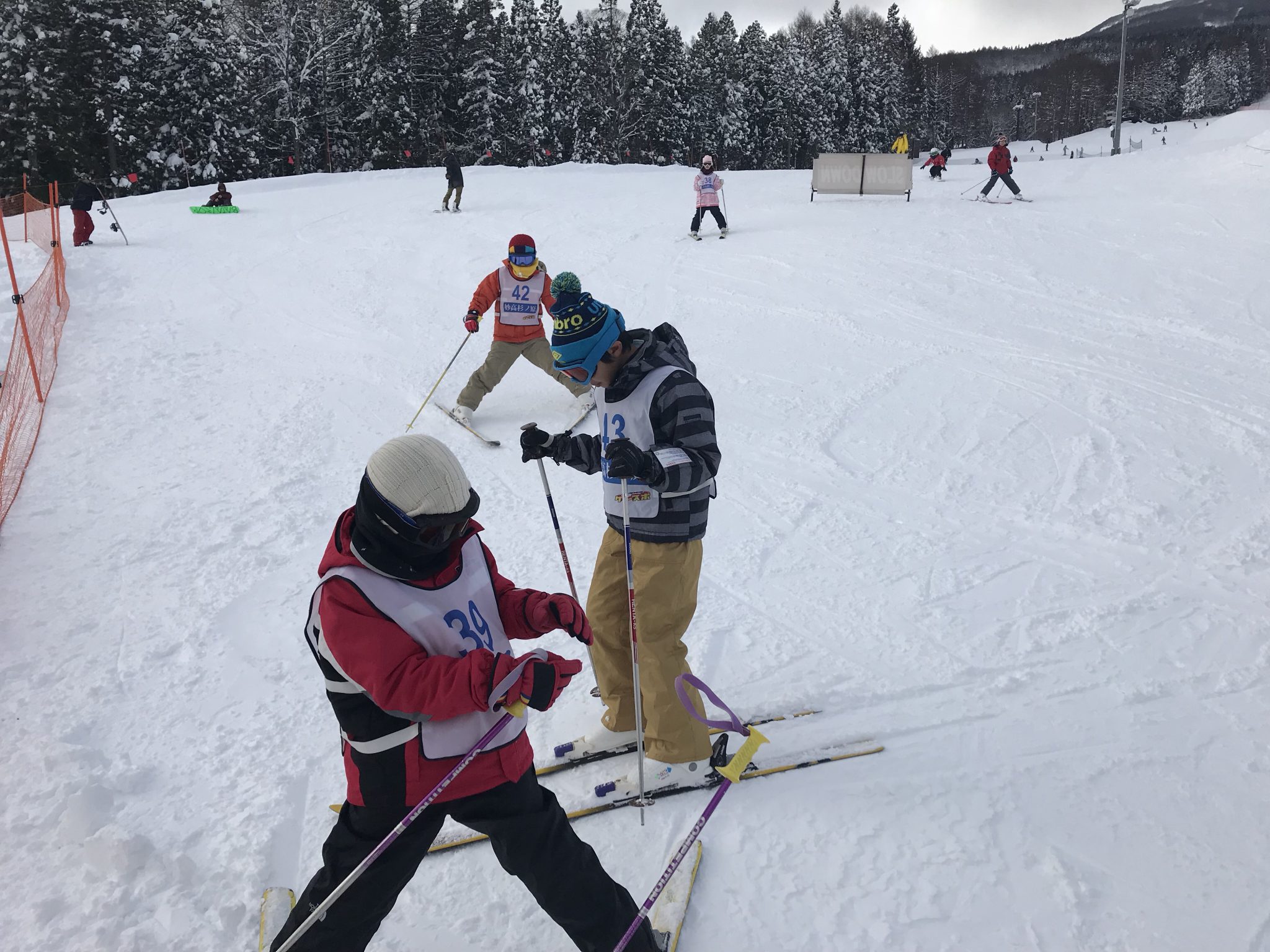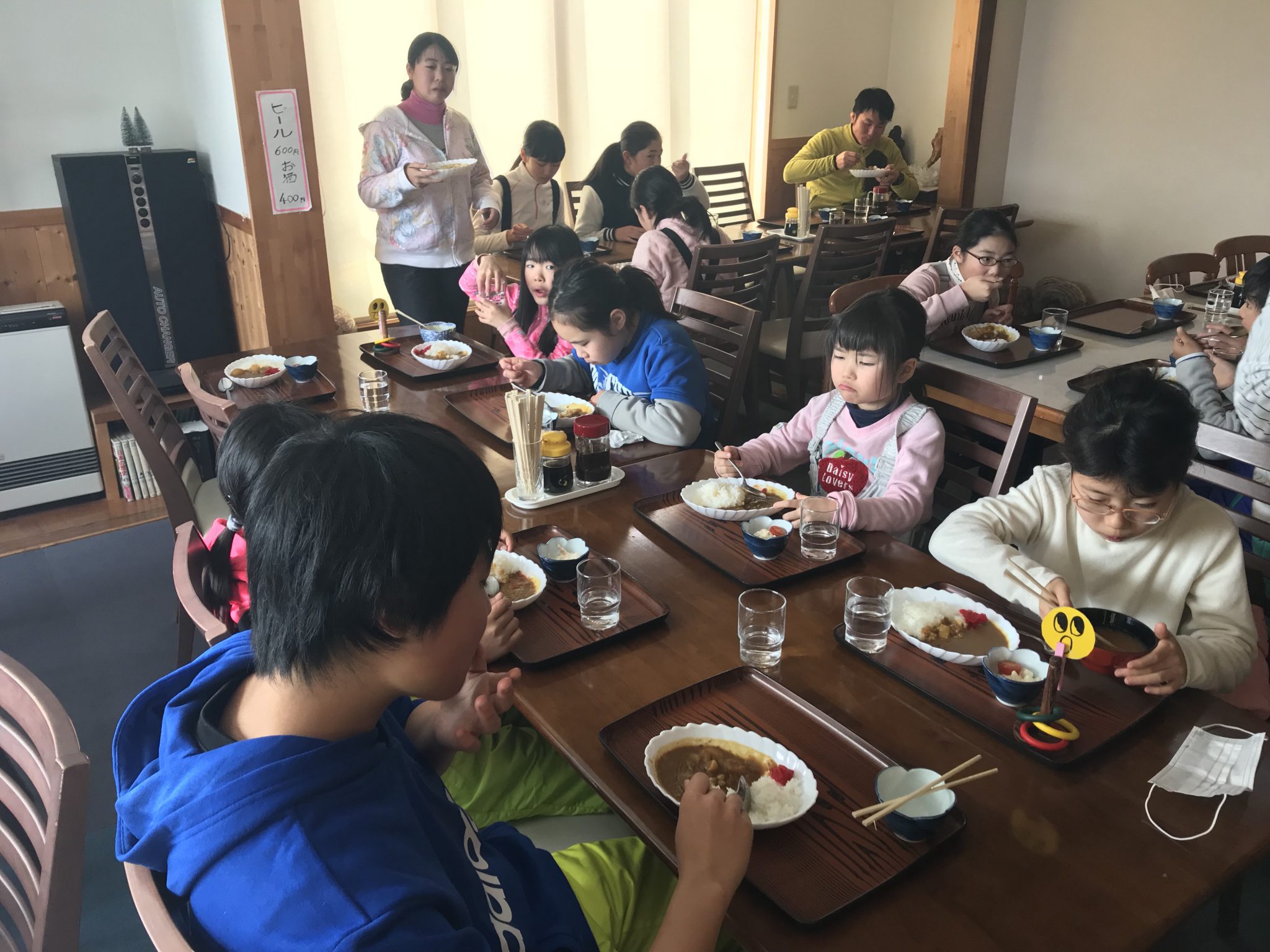 スキー教室メンバーはお昼のカレーをお腹いっぱい食べ、午後のスキーに出発しました! 集中・上達コースは検定。 体験コースは自由スキーをします。 検定組は緊張した面持ちでスキーに向かいました。