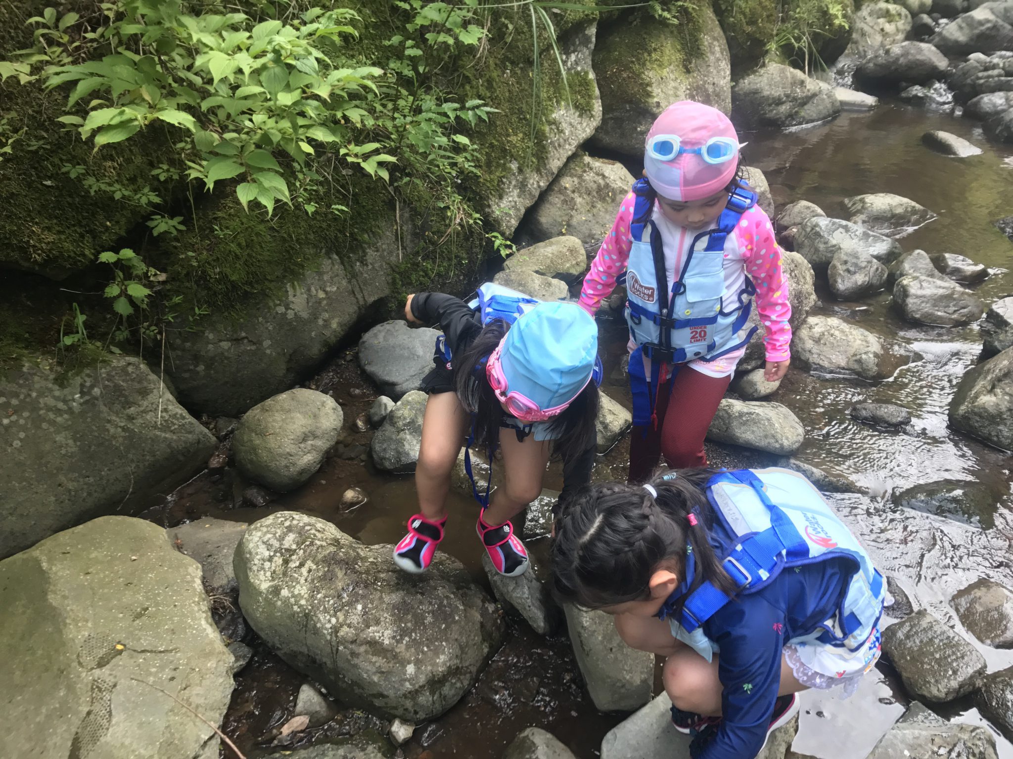 いつもあばれんぼキャンプブログをご覧いただきありがとうございます。 夏ちびメンバーは川遊びを始めました! 水のかけあいや、生き物探しなどをして遊んでいます。