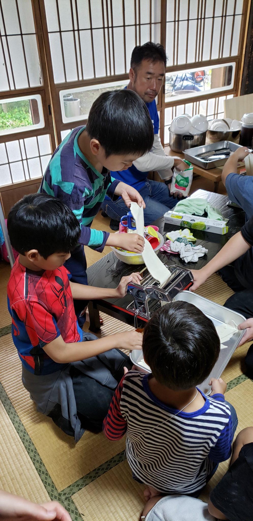 いつもあばれんぼキャンプブログをご覧いただきありがとうございます。竹で箸を作り、美味しいうどんを食べるミッション、無事に進行中です。その様子をアップします。 JR中央線猿橋駅から時間通り乗車しています。お迎え頂く保護者様、現在予定通り運行しております。