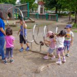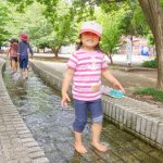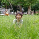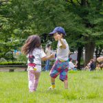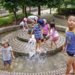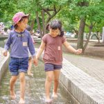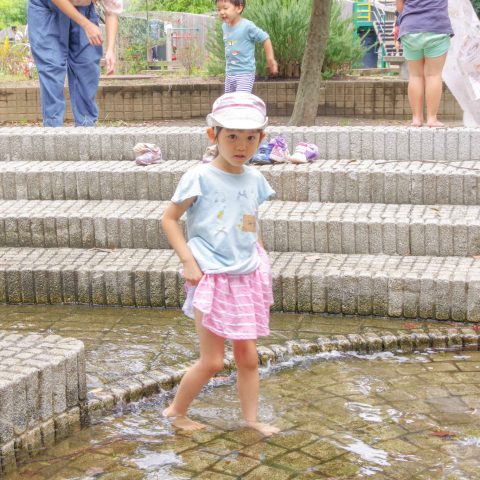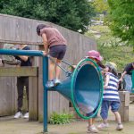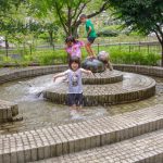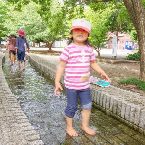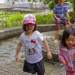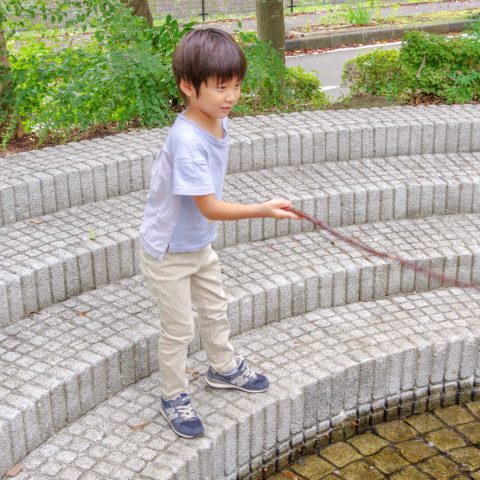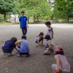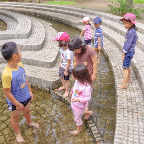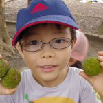 今回の森のようちえんは、「乞田・貝取ふれあい広場」に行き、ドングリ広いや遊具、小さな水路で遊びました。