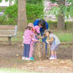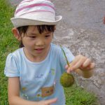 午後からは遊具で遊ぶ子は少なく、ドングリ拾いをしたり、木の枝で木の実を取ってみたりしていました。