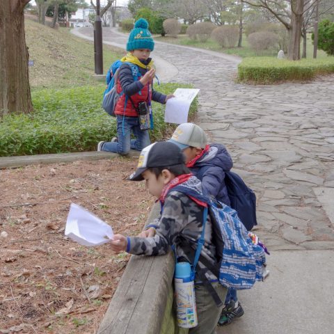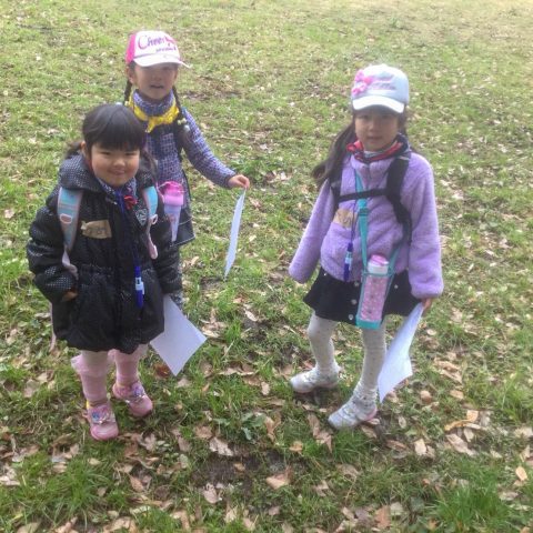 虫眼鏡と聴診器を片手に公園内を散策し、秋の虫や紅葉を見ながら幼児の素直な気持ちを引き出し、感受性を育むキッカケ作りをします。