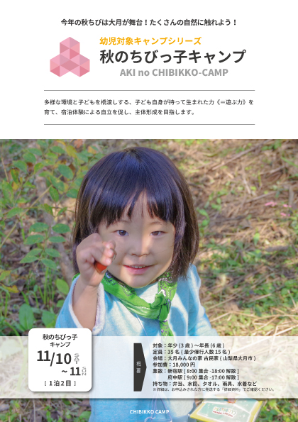 今年の秋ちびは大月市にあるあばれんぼキャンプ所有の古民家「大月みんなの家」が舞台!