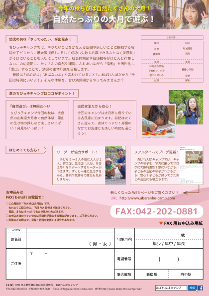 資料請求・お申込みは「あばれんぼキャンプ事務局」まで!
