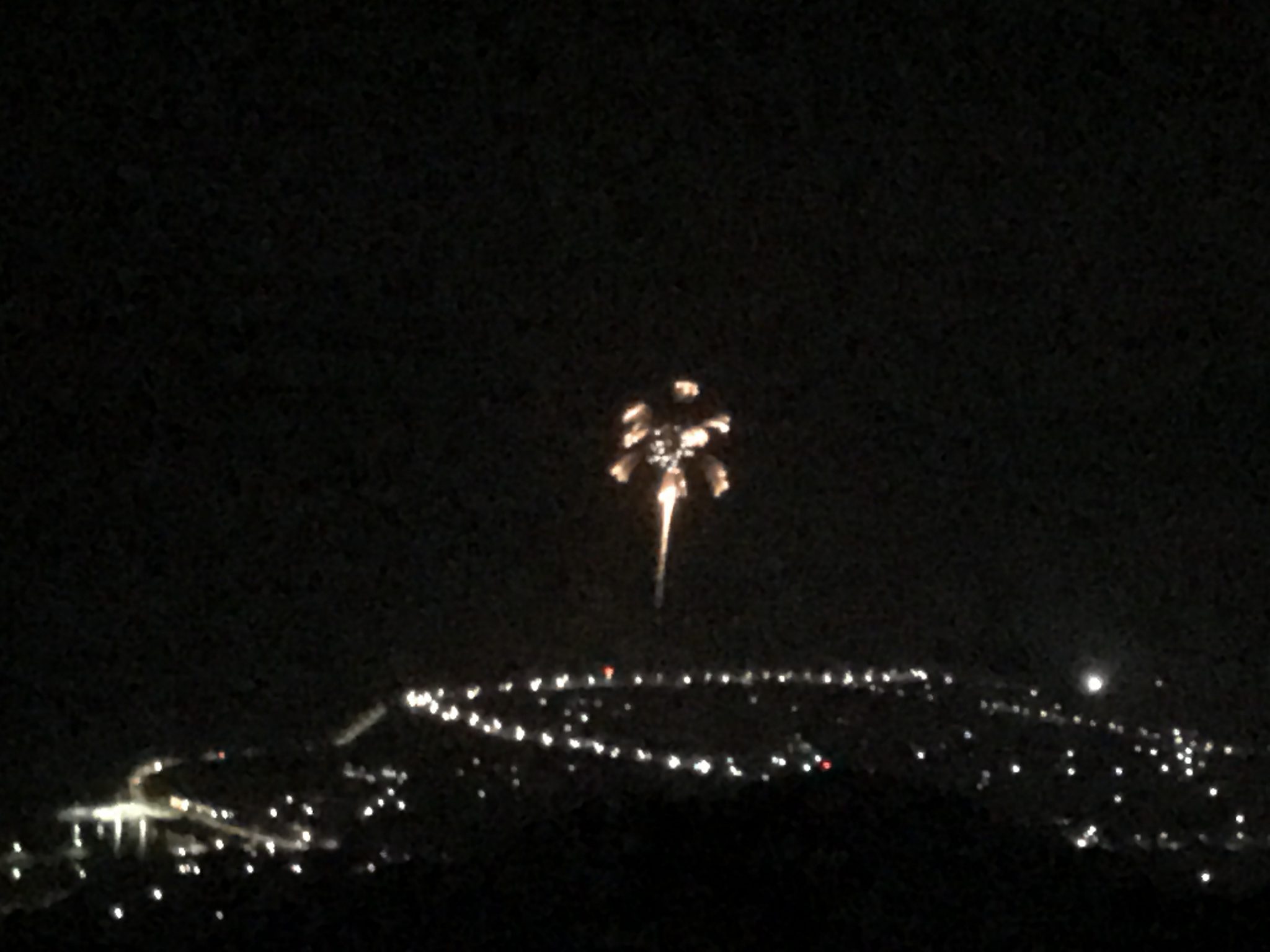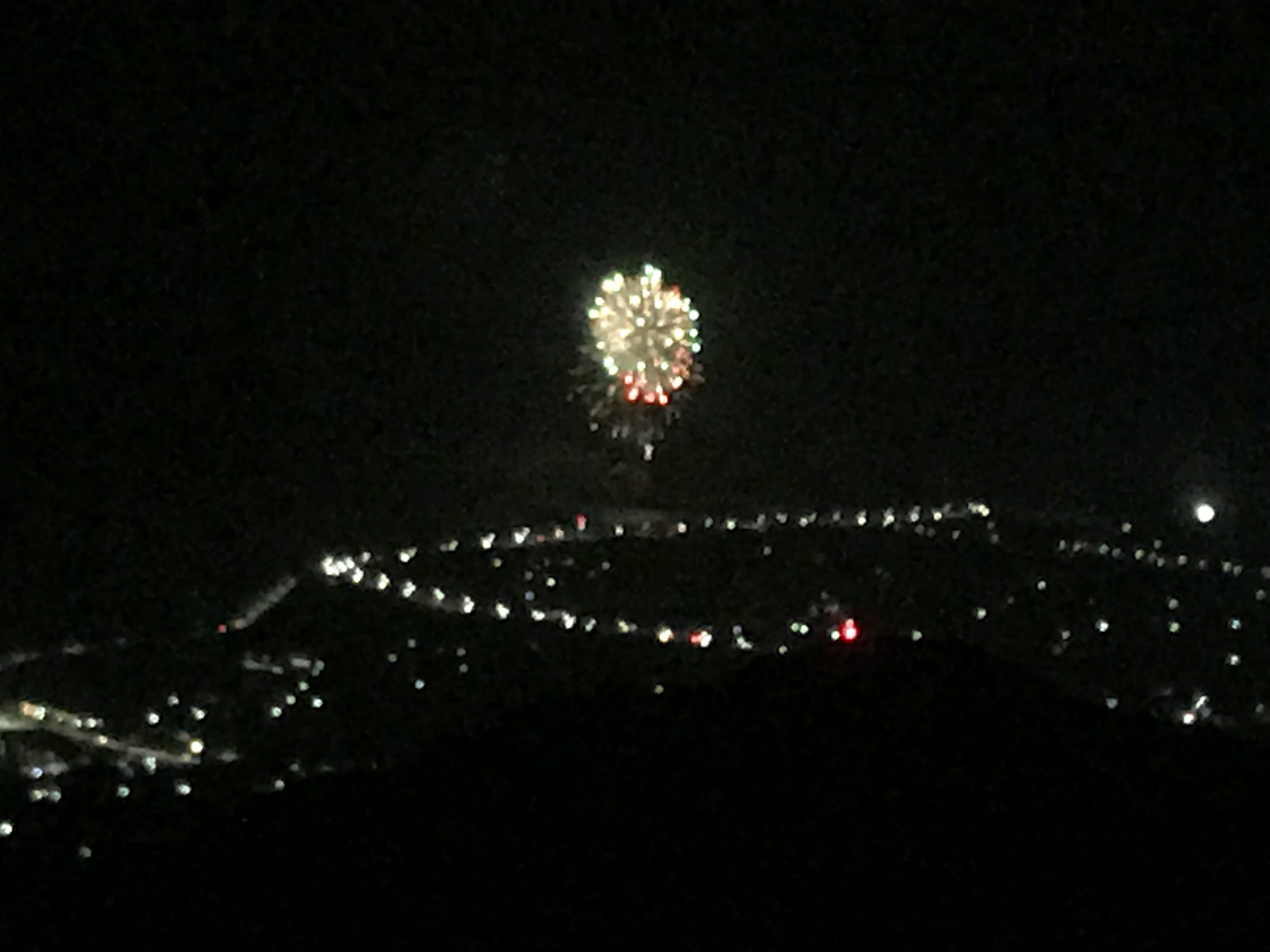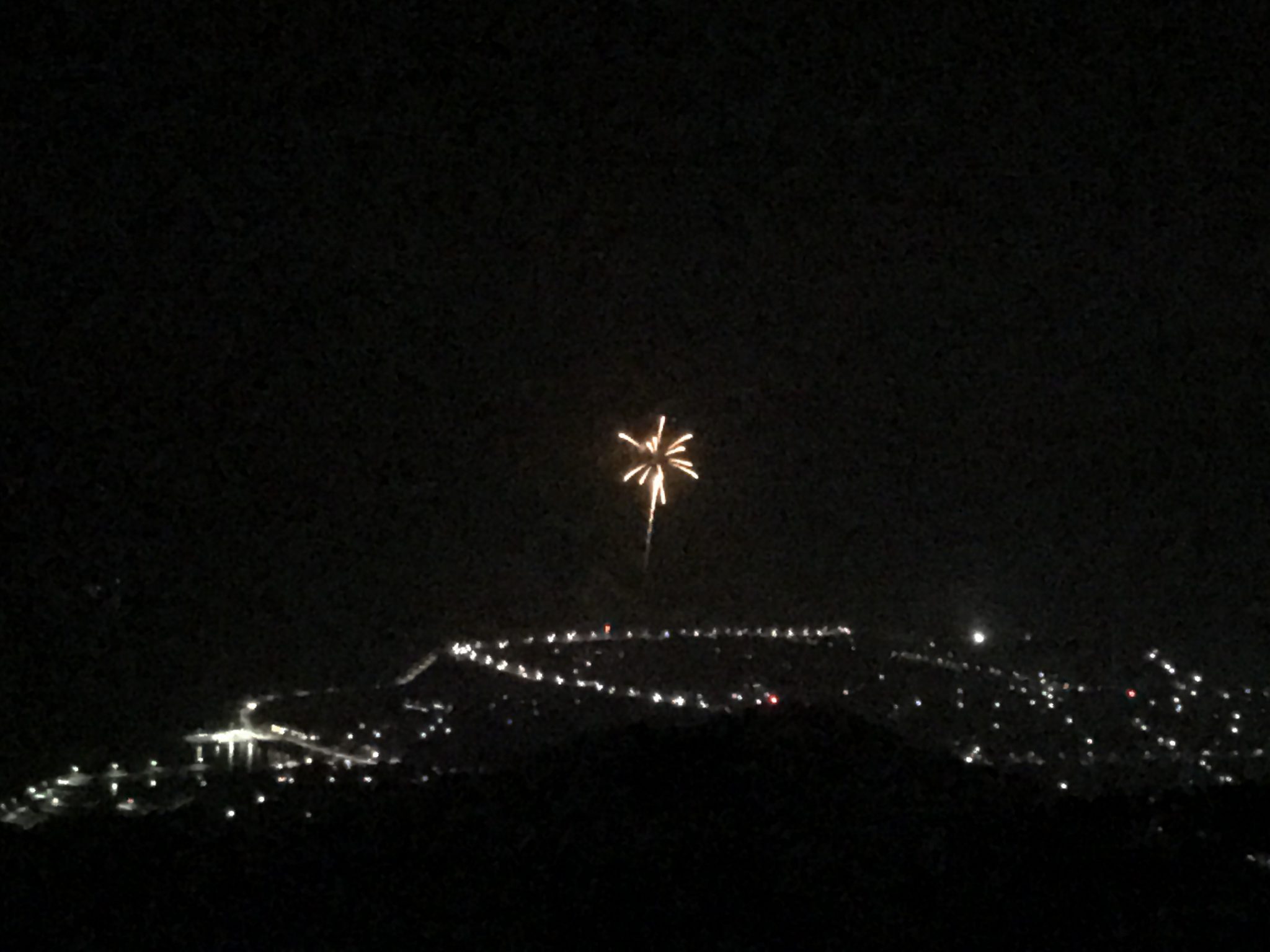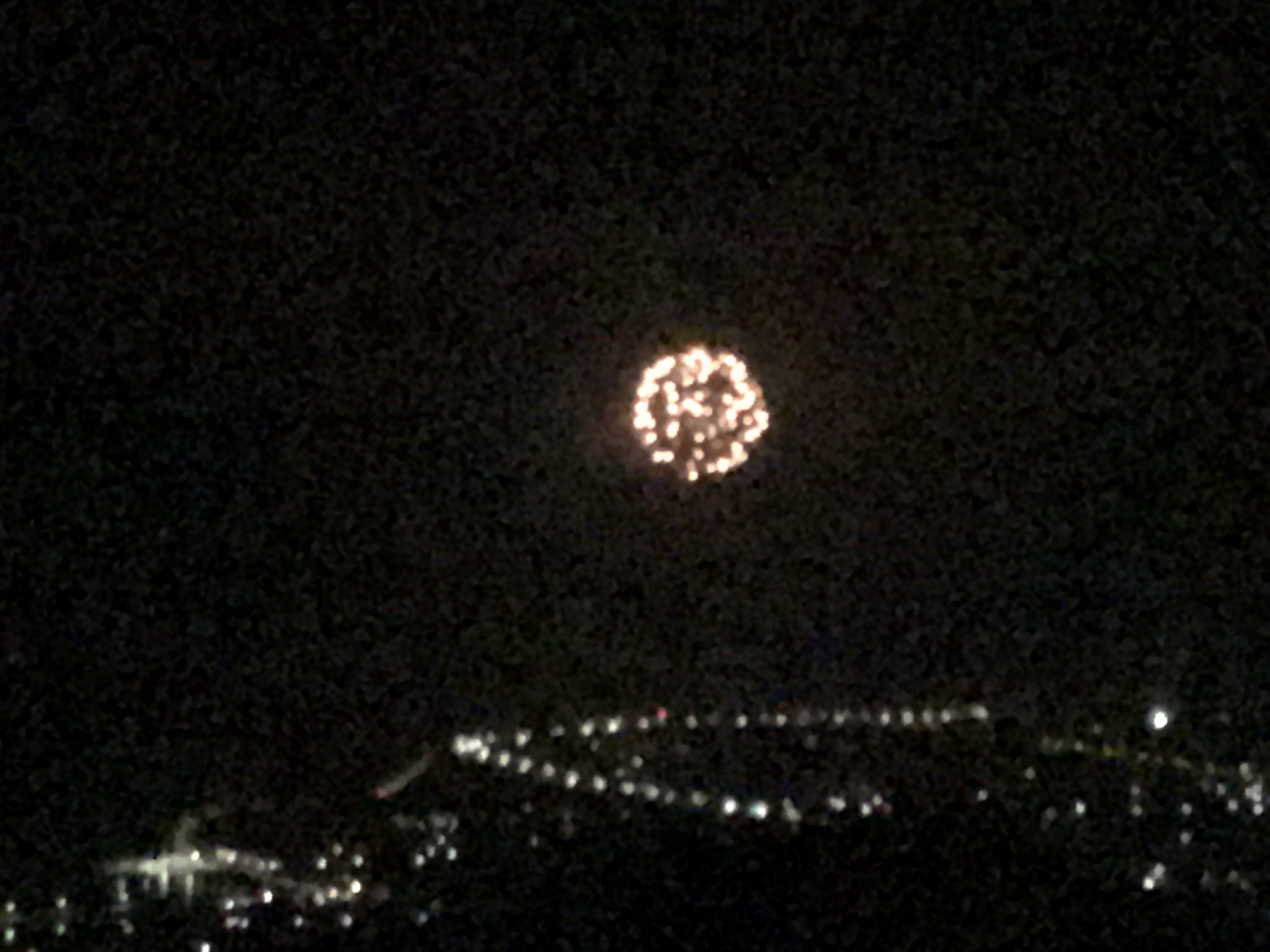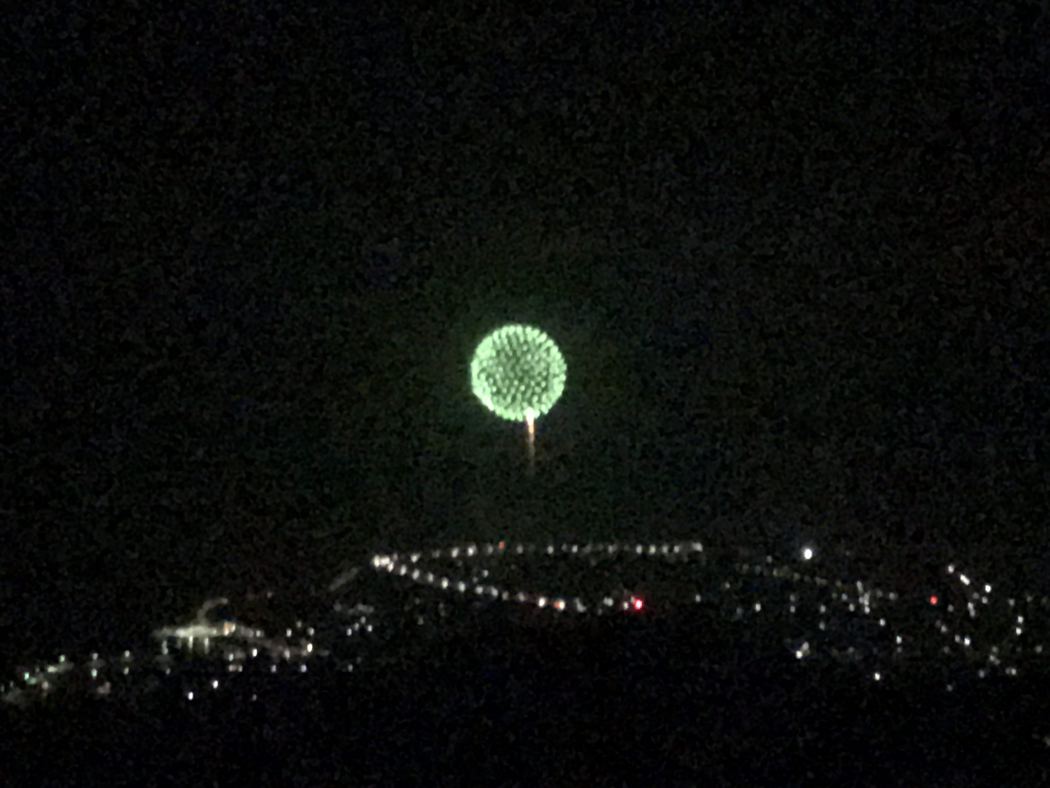 八丈島キャンプメンバーは夕飯をたくさん食べ、花火を見に行きました! 会場は人がたくさんで車を停めることができなかったので、八丈島富士の中腹から打ち上げ花火を見ました。