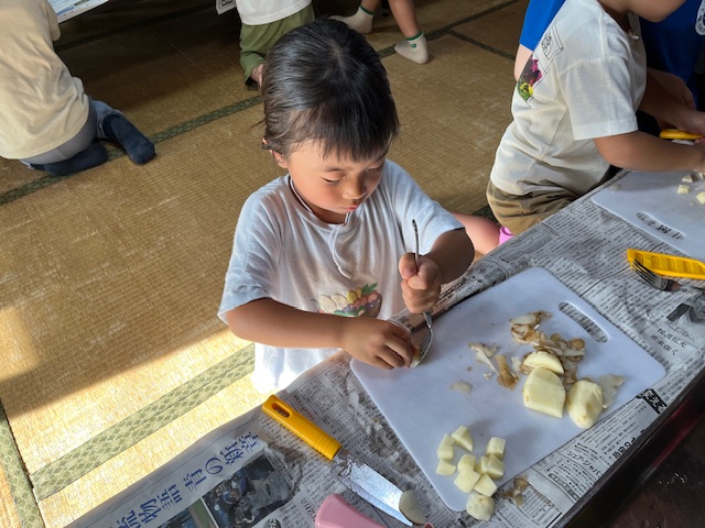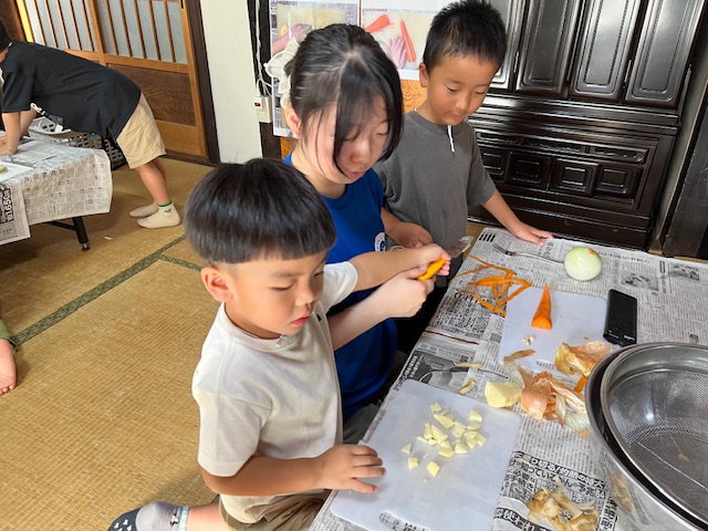 夏のちびっ子キャンプメンバーは、夕飯のカレー作りに挑戦しました^ ^
