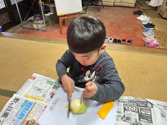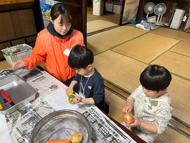 春のちびっ子キャンプメンバーは、夕飯のカレー作りに挑戦しました^ ^