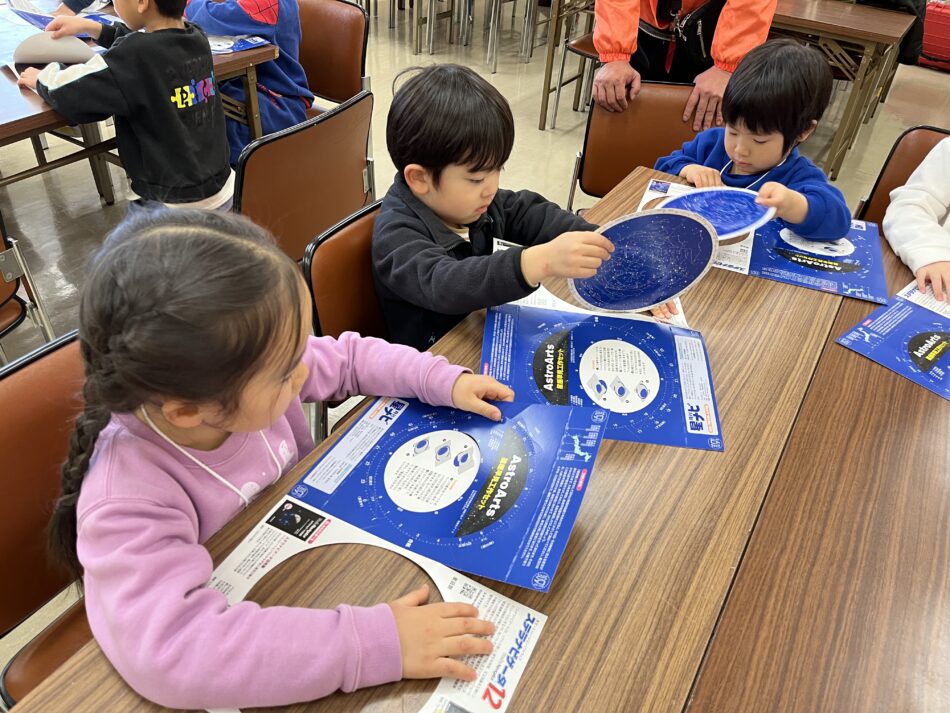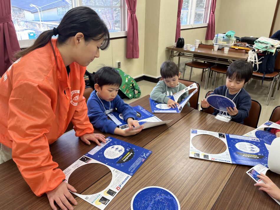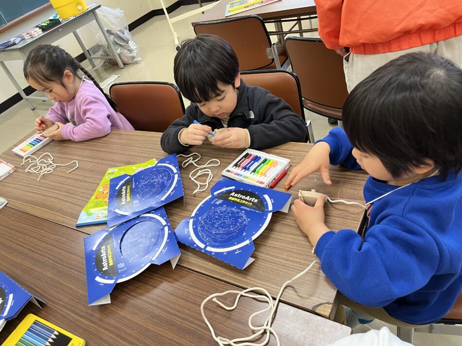 冬のちびっ子キャンプメンバーは、キャンプが終わった後も星座観察を楽しめるように星座早見盤を作りました^ ^