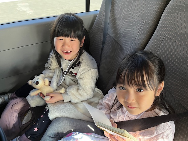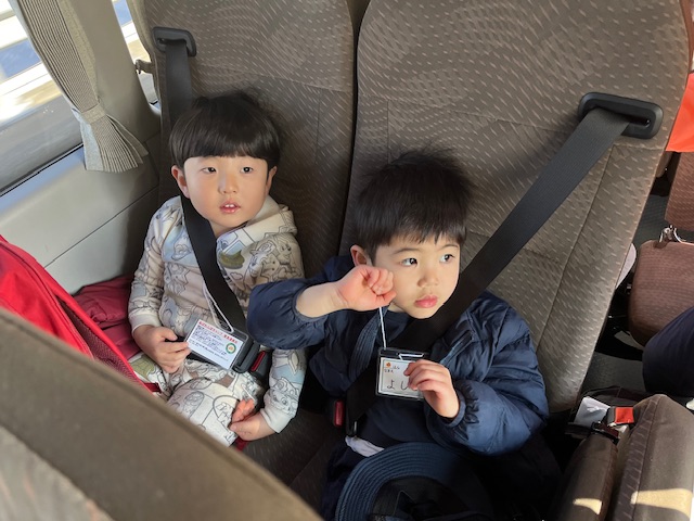 バスの中では、初めて会ったお友達ともすぐ仲良くなり元気いっぱい過ごしています!