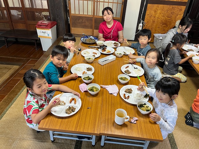 朝のお散歩ではやまびこを楽しみ、朝ごはんをしっかり食べています!