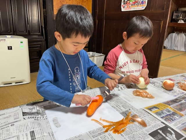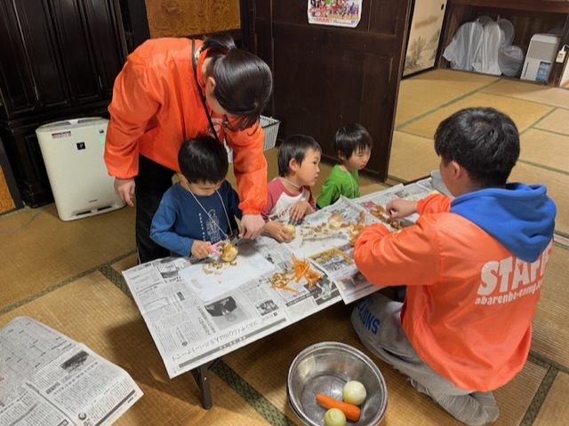 ちびっ子キャンプメンバーは、みんなでカレー作りに挑戦しました。