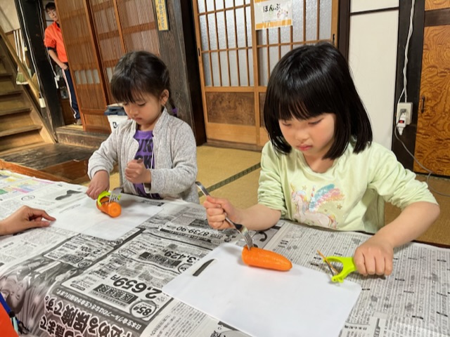 カレーを食べながら誰が型抜きしてくれた野菜なのかを当てることで盛り上がっていました☆
