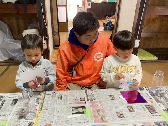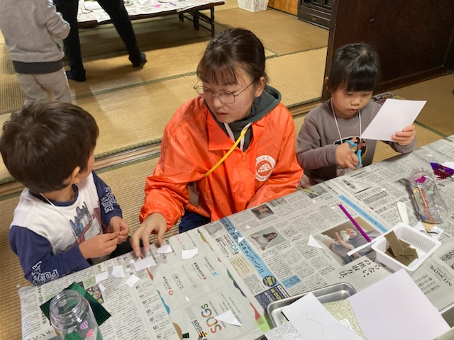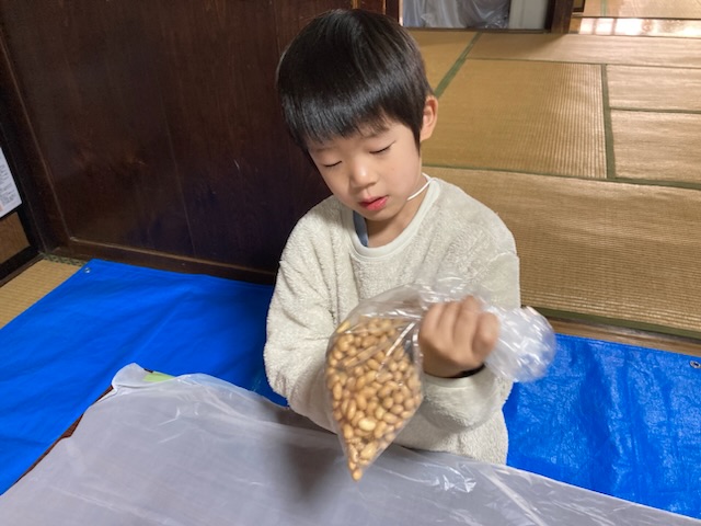 秋のちびっ子キャンプメンバーは、工作でランタンを作った後、お味噌づくりを始めました。