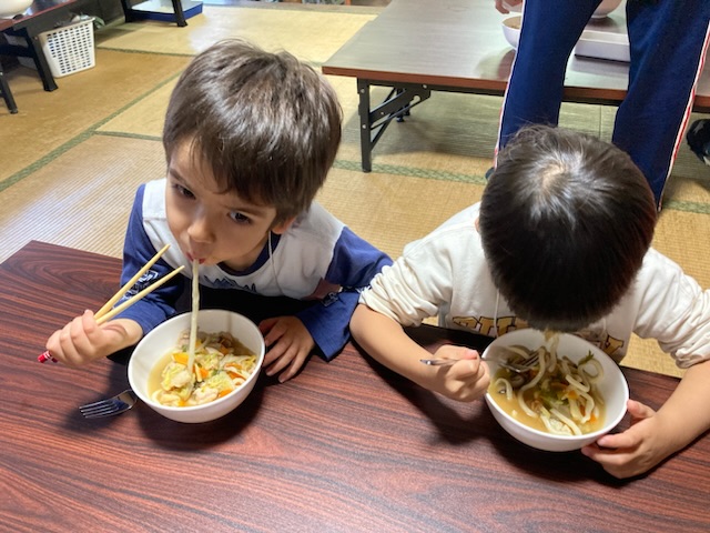 たった2日間なのに子どもたちはすっかり仲良くなり、次いつ会おう?、いつ一緒に遊ぼうか?と話しながらの昼食になりました。
