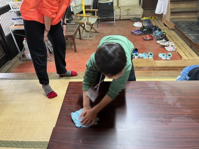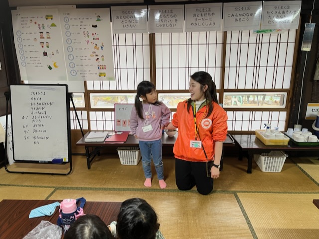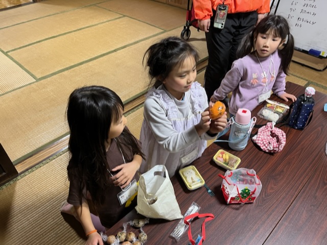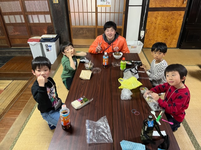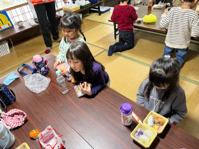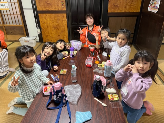 小雨が降っていたため古民家内の探検をして、お弁当を早めに食べました。