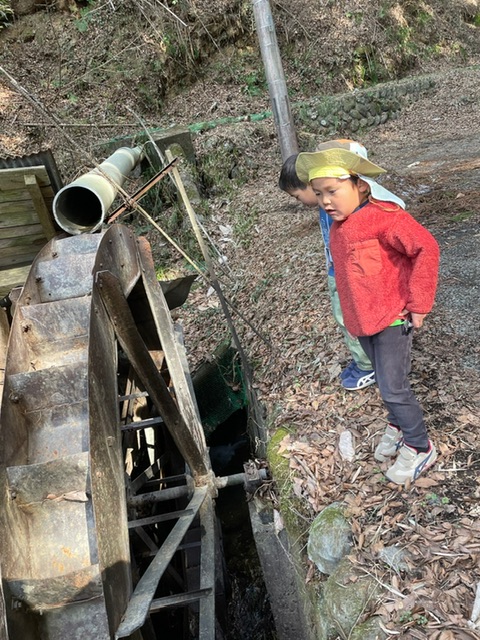 水車を見つけたり、軽登山をして頂上にある神社にお参りしたりと…
